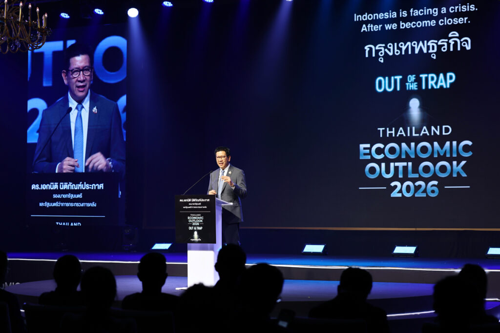 นายเอกนิติ นิติทัณฑ์ประภาศ รองนายกรัฐมนตรีและรัฐมนตรีว่าการกระทรวงการคลัง ปาฐกถาพิเศษในงาน Thailand Economic Outlook 2026 Out of the Trap จัดโดยบริษัท เนชั่น กรุ๊ป (ไทยแลนด์) จำกัด (มหาชน) ณ ห้องฉัตราบอลรูม โรงแรม สยาม เคมปินสกี้ กรุงเทพฯ เมื่อวันที่ 9 ตุลาคม 2568