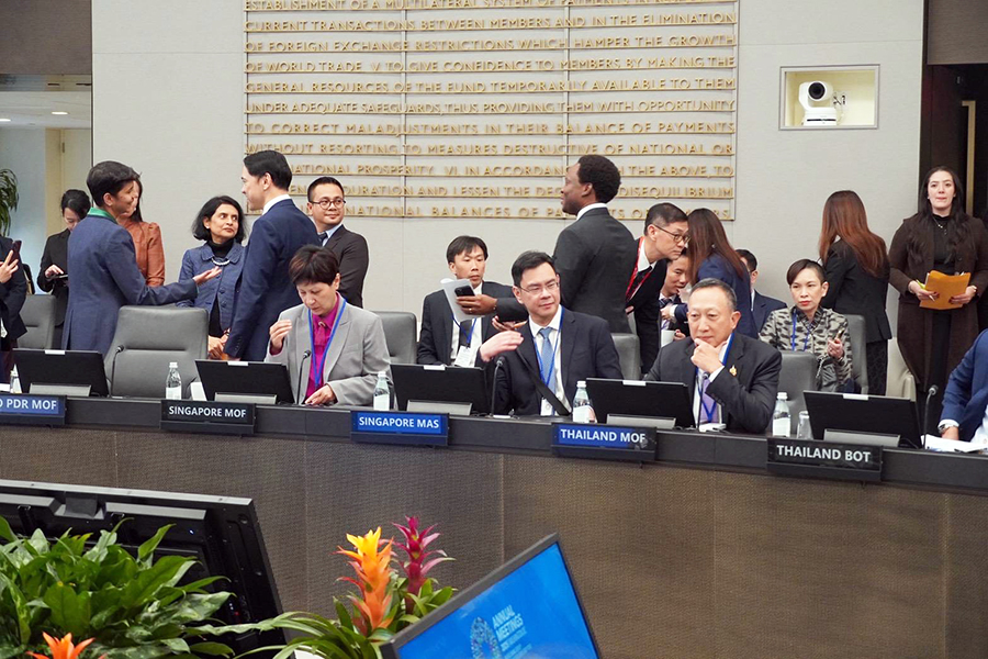 นายวรภัค ธันยาวงษ์ รัฐมนตรีช่วยว่าการกระทรวงการคลัง และนายวินิจ วิเศษสุวรรณภูมิ ผู้อำนวยการสำนักงานเศรษฐกิจการคลัง ร่วมการประชุม The Annual Roundtable of the IMF Managing Director and ASEAN Finance Ministers and Central Bank Governors โดยมีการหารือถึงแนวนโยบายเศรษฐกิจของประเทศสมาชิกอาเซียนและแลกเปลี่ยนความเห็นกับนาง Kristalina Georgiava กรรมการจัดการกองทุนการเงินระหว่างประเทศ (IMF) ในห้วงการประชุมประจำปีสภาผู้ว่าการธนาคารโลกและกองทุนการเงินระหว่างประเทศ ปี 2568 ณ กรุงวอชิงตัน ดี.ซี. สหรัฐอเมริกา เมื่อวันที่ 14 ตุลาคม 2568