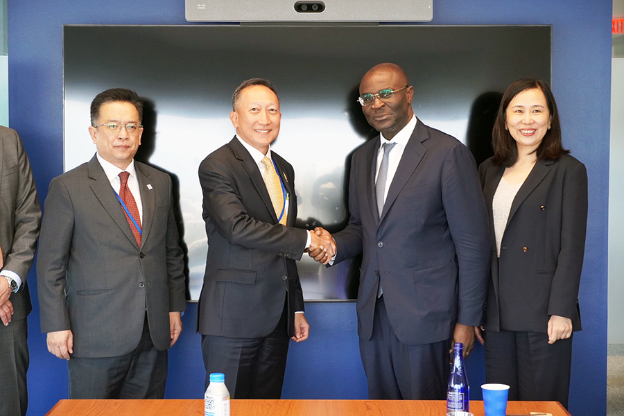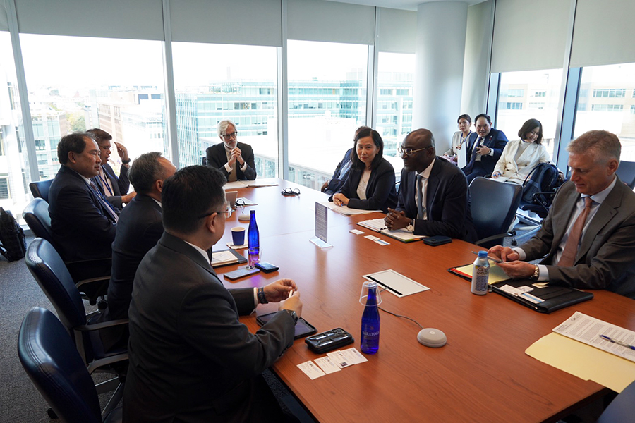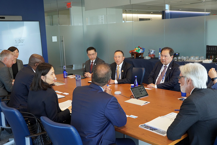 นายวรภัค ธันยาวงษ์ รัฐมนตรีช่วยว่าการกระทรวงการคลัง และนายวินิจ วิเศษสุวรรณภูมิ ผู้อำนวยการสำนักงานเศรษฐกิจการคลัง ร่วมการประชุมหารือทวิภาคีกับ Mr. Allen Forlemu รองประธาน International Finance Corporation (IFC) ในประเด็นเรื่องการดำเนินงานของ IFC เพื่อส่งเสริมการลงทุนอย่างยั่งยืนและทั่วถึงในประเทศไทย และนโยบายด้านการพัฒนาของประเทศไทย ในห้วงการประชุมประจำปีสภาผู้ว่าการธนาคารโลกและกองทุนการเงินระหว่างประเทศ ปี 2568 ณ กรุงวอชิงตัน ดี.ซี. สหรัฐอเมริกา เมื่อวันที่ 15 ตุลาคม 2568