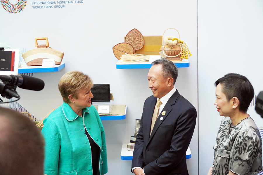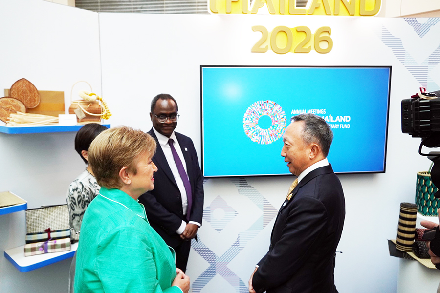 นายวรภัค ธันยาวงษ์ รัฐมนตรีช่วยว่าการกระทรวงการคลัง และนายวินิจ วิเศษสุวรรณภูมิ ผู้อำนวยการสำนักงานเศรษฐกิจการคลัง ให้การต้อนรับ Ms. Kristalina Georgiava กรรมการจัดการกองทุนการเงินระหว่างประเทศ (IMF) ณ บูธประชาสัมพันธ์การเป็นเจ้าภาพการประชุมประจำปีสภาผู้ว่าการธนาคารโลกและกองทุนการเงินระหว่างประเทศในปี 2569 ของประเทศไทย ในห้วงการประชุมประจำปีสภาผู้ว่าการธนาคารโลกและกองทุนกากรเงินระหว่างประเทศ ปี 2568 ณ กรุงวอชิงตัน ดี.ซี. สหรัฐอเมริกา เมื่อวันที่ 15 ตุลาคม 2568