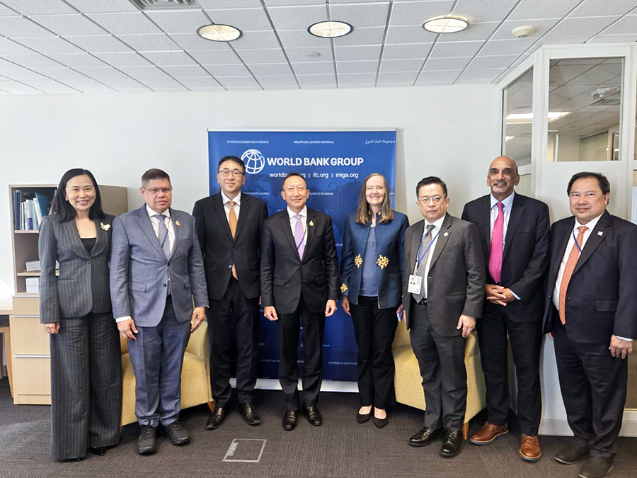 นายวรภัค ธันยาวงษ์ รัฐมนตรีช่วยว่าการกระทรวงการคลัง และนายวินิจ วิเศษสุวรรณภูมิ ผู้อำนวยการสำนักงานเศรษฐกิจการคลัง ร่วมการประชุมหารือทวิภาคีกับนาย Sangbu Kim รองประธานธนาคารโลกด้านดิจิทัล ในประเด็นความร่วมมือด้าน Digital Transformation และการประยุกต์ใช้ AI ในการทำงาน ในห้วงการประชุมประจำปีสภาผู้ว่าการธนาคารโลกและกองทุนการเงินระหว่างประเทศ ปี 2568 ณ กรุงวอชิงตัน ดี.ซี. สหรัฐอเมริกา เมื่อวันที่ 16 ตุลาคม 2568