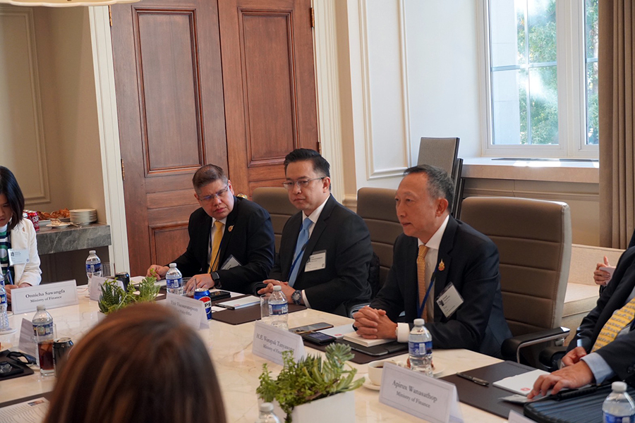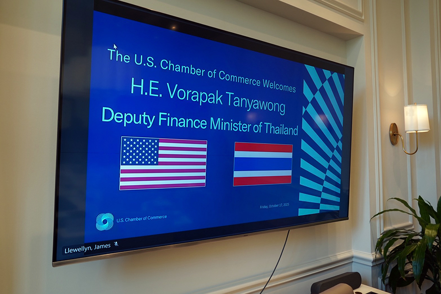 นายวรภัค ธันยาวงษ์ รัฐมนตรีช่วยว่าการกระทรวงการคลัง และนายวินิจ วิเศษสุวรรณภูมิ ผู้อำนวยการสำนักงานเศรษฐกิจการคลัง ร่วมการประชุมกับผู้แทน US Chamber of Commerce โดยได้หารือถึงนโยบายที่เอื้อต่อการดำเนินธุรกิจกับผู้แทนจากบริษัทเอกชนชั้นนำของสหรัฐอเมริกา ในห้วงการประชุมประจำปีสภาผู้ว่าการธนาคารโลกและกองทุนการเงินระหว่างประเทศ ปี 2568 ณ กรุงวอชิงตัน ดี.ซี. สหรัฐอเมริกา เมื่อวันที่ 17 ตุลาคม 2568