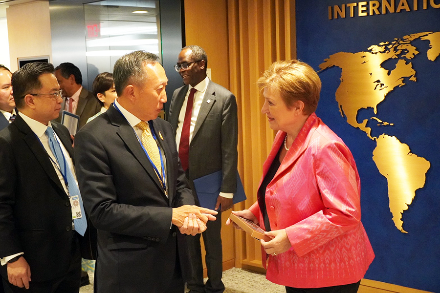 นายวรภัค ธันยาวงษ์ รัฐมนตรีช่วยว่าการกระทรวงการคลัง และนายวินิจ วิเศษสุวรรณภูมิ ผู้อำนวยการสำนักงานเศรษฐกิจการคลัง ร่วมการประชุมหารือทวิภาคีกับ Ms. Kristalina Georgiava Managing Director กองทุนการเงินระหว่างประเทศ (IMF) ในประเด็นที่ประเทศไทยจะเป็นเจ้าภาพการประชุมประจำปีสภาผู้ว่าการธนาคารโลกและกองทุนการเงินระหว่างประเทศในปี 2569 โดยหารือถึงความคืบหน้าในการเตรียมความพร้อมการเป็นเจ้าภาพ แผนการรักษาความปลอดภัย และการประชาสัมพันธ์ต่าง ๆ ซึ่งยังคงคืบหน้าไปตามแผนที่กำหนดไว้ นอกจากนี้ ยังได้หารือถึงนโยบายที่ประเทศไทยให้ความสำคัญ ณ กรุงวอชิงตัน ดี.ซี. สหรัฐอเมริกา เมื่อวันที่ 17 ตุลาคม 2568