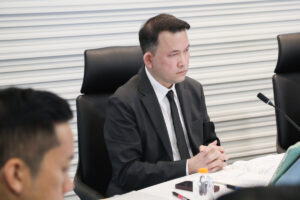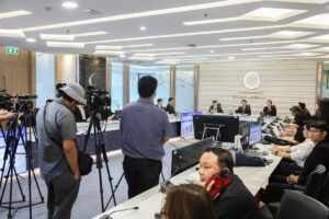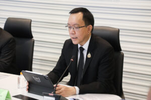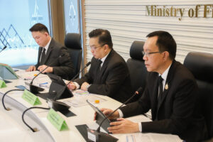 นายวินิจ วิเศษสุวรรณภูมิ ผู้อำนวยการ สำนักงานเศรษฐกิจการคลัง ในฐานะโฆษกกระทรวงการคลัง พร้อมด้วยนายวโรทัย โกศลพิศิษฐ์กุล ที่ปรึกษาด้านเศรษฐกิจระหว่างประเทศ สำนักงานเศรษฐกิจการคลัง แถลงข่าวประมาณการเศรษฐกิจไทย ณ ห้องประชุม 401 อาคาร 150 ปี กระทรวงการคลัง เมื่อวันที่ 30 ตุลาคม 2568