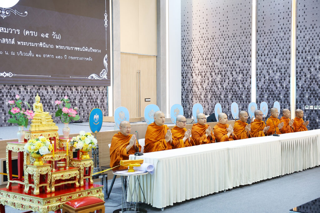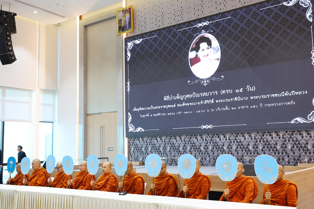 นายลวรณ แสงสนิท ปลัดกระทรวงการคลัง เป็นประธานในพิธีบำเพ็ญกุศลปัณรสมวาร (ครบ 15 วัน) ถวายเป็นพระราชกุศลแด่สมเด็จพระนางเจ้าสิริกิติ์ พระบรมราชินีนาถ พระบรมราชชนนีพันปีหลวง โดยมีนายอาร์ชวัส เจริญศิลป์ เลขานุการรัฐมนตรีว่าการกระทรวงการคลัง พร้อมด้วยคณะผู้บริหารกระทรวงการคลัง ข้าราชการ เจ้าหน้าที่และหน่วยงานในสังกัดกระทรวงการคลัง เข้าร่วมในพิธีฯ ณ ชั้น 21 อาคาร 150 ปี กระทรวงการคลัง เมื่อวันที่ 7 พฤศจิกายน 2568