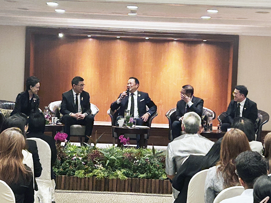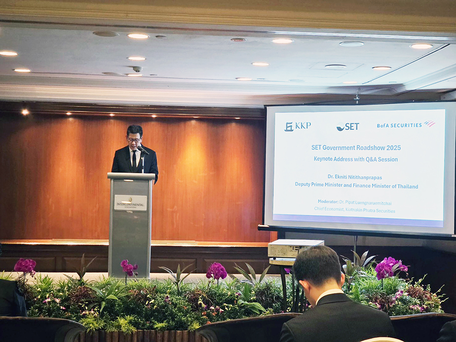 นายอนุทิน ชาญวีรกูล นายกรัฐมนตรีและรัฐมนตรีว่าการกระทรวงมหาดไทย พร้อมด้วย นายเอกนิติ นิติทัณฑ์ประภาศ รองนายกรัฐมนตรีและรัฐมนตรีว่าการกระทรวงการคลัง และคณะ ประกอบด้วย นายสีหศักดิ์ พวงเกตุแก้ว รัฐมนตรีว่าการกระทรวงการต่างประเทศ และ นางศุภจี สุธรรมพันธุ์ รัฐมนตรีว่าการกระทรวงพาณิชย์ เข้าร่วมงาน “SET Government Roadshow 2025” ซึ่งจัดขึ้นโดยตลาดหลักทรัพย์แห่งประเทศไทย (SET) ร่วมกับบริษัทหลักทรัพย์เกียรตินาคินภัทร จำกัด (มหาชน) และ Bank of America ณ โรงแรม InterContinental Singapore เมื่อวันที่ 7 พฤศจิกายน 2568