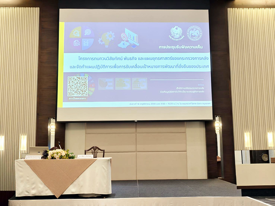 นายอรรถพล อรรถวรเดช รองปลัดกระทรวงการคลัง เป็นประธานเปิดงานประชุมทบทวนวิสัยทัศน์ พันธกิจ และแผนยุทธศาสตร์กระทรวงการคลัง เพื่อจัดทำแผนปฏิบัติการขับเคลื่อนเป้าหมายการพัฒนาที่ยั่งยืนของประเทศ และเปิดรับฟังความคิดเห็นและข้อเสนอแนะต่อ (ร่าง) แผนปฏิบัติราชการ ระยะ 3 ปี (พ.ศ. 2569-2571) ของกระทรวงการคลัง ณ ห้องแกรนด์ 1 โรงแรมกราฟ โฮเทล รัชดา กรุงเทพฯ เมื่อวันที่ 18 พฤศจิกายน 2568