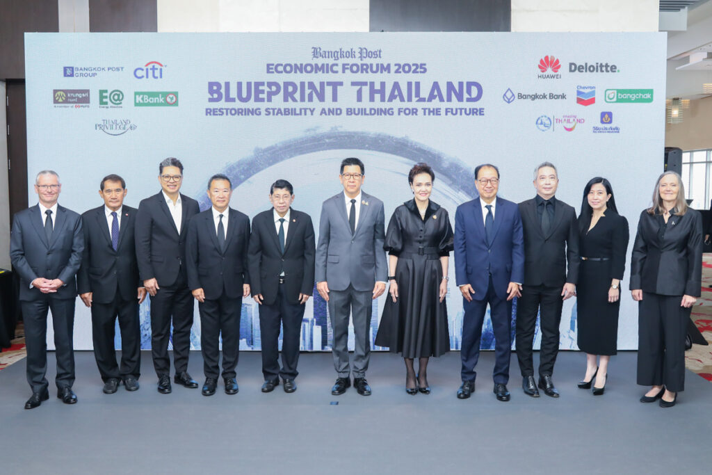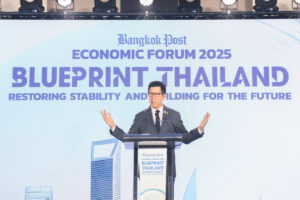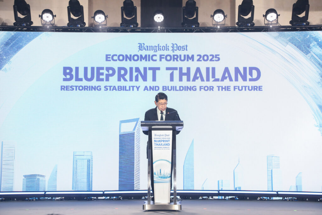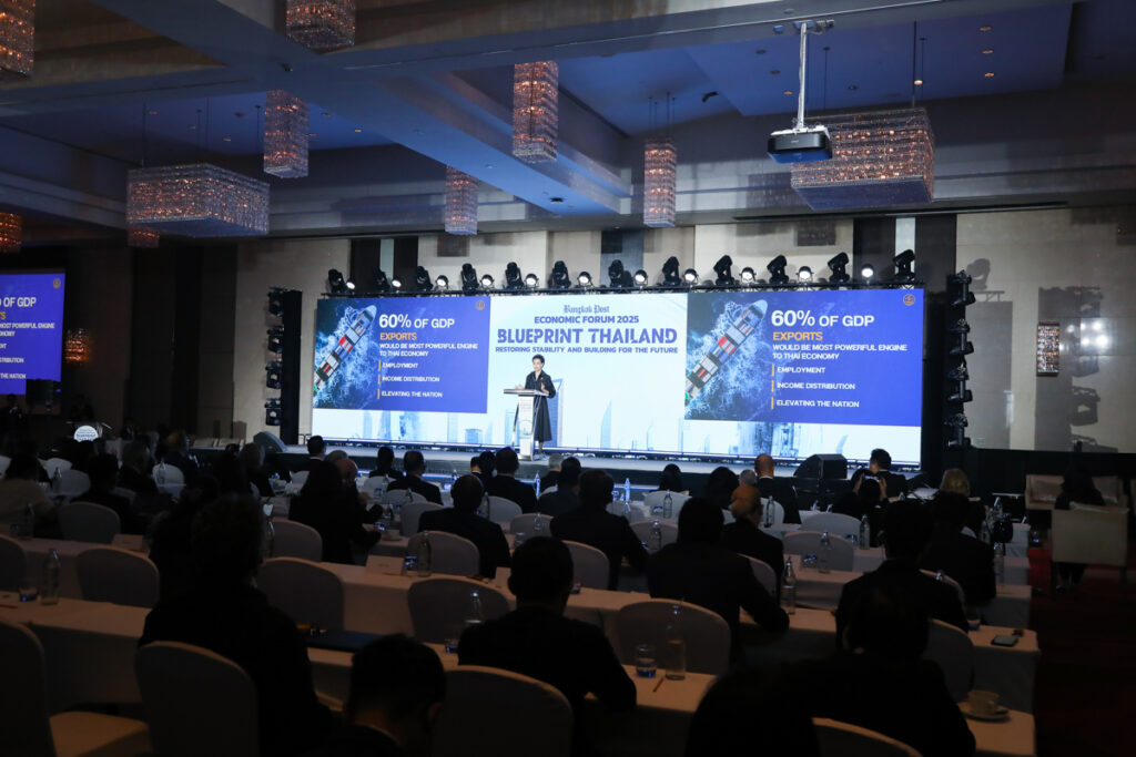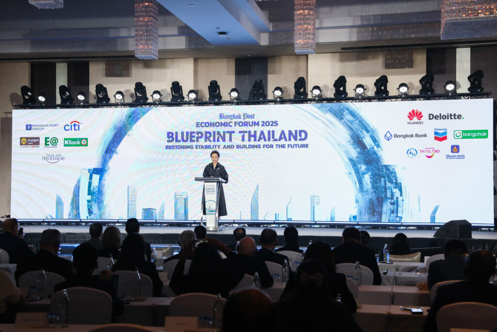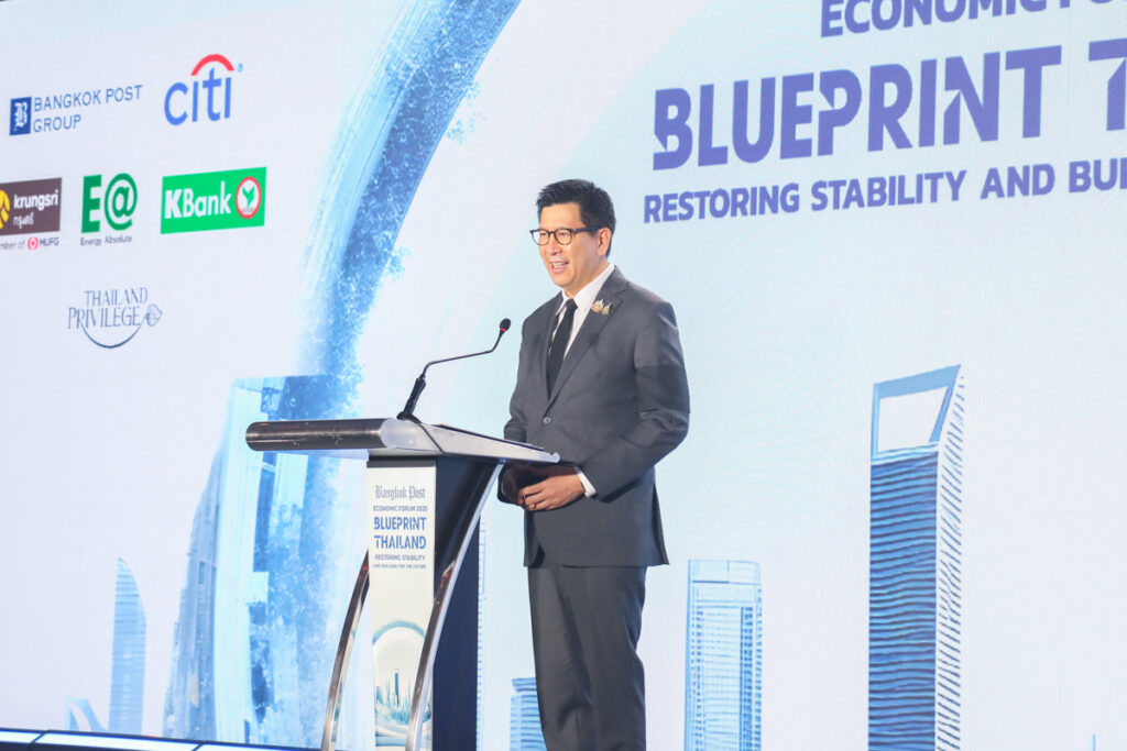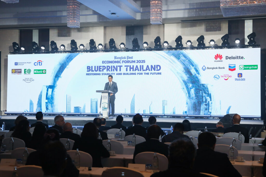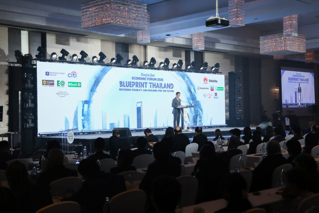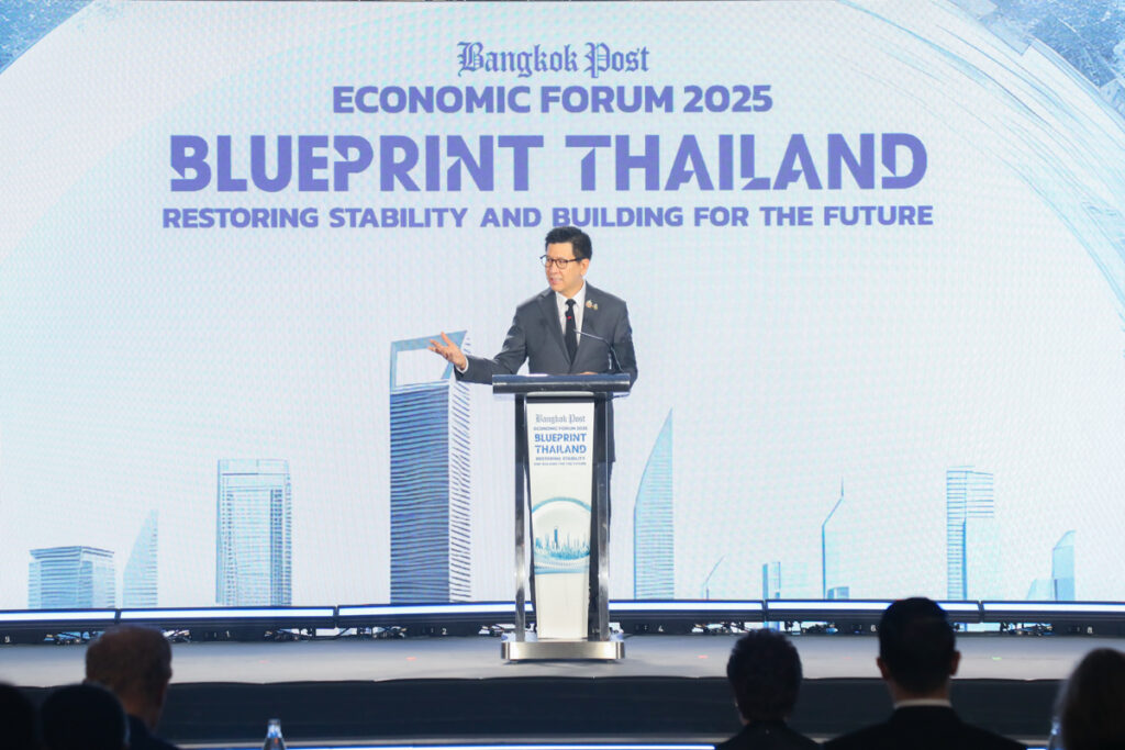 ดร.เอกนิติ นิติทัณฑ์ประภาศ รองนายกรัฐมนตรีและรัฐมนตรีว่าการกระทรวงการคลัง ปาฐกถาพิเศษ หัวข้อ “Blueprint Thailand : Restoring Stability and Building for the Future” และนางศุภจี สุธรรมพันธุ์ รัฐมนตรีว่าการกระทรวงพาณิชย์ ปาฐกถาพิเศษ หัวข้อ “Reigniting Thailand’s Growth Engine : Trade and Exports” ในงาน Bangkok Post Economic Forum 2025 “Blueprint Thailand : Restoring Stability and Building for the Future” โดยมี ศ.ดร.วิษณุ เครืองาม ประธานกรรมการ บริษัท บางกอกโพสต์ จำกัด (มหาชน) กล่าวต้อนรับ ณ ห้องเวิลด์บอลรูม ชั้น 23 โรงแรมเซ็นทารา แกรนด์ แอท เซ็นทรัลเวิลด์ เมื่อวันที่ 21 พฤศจิกายน 2568