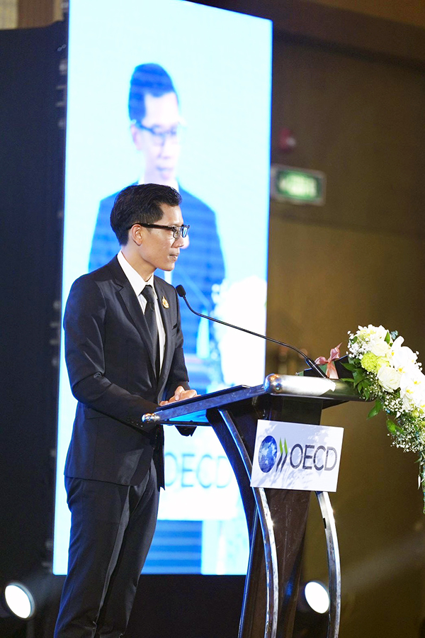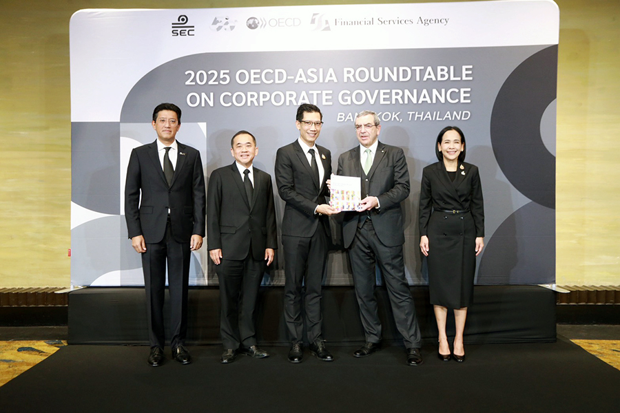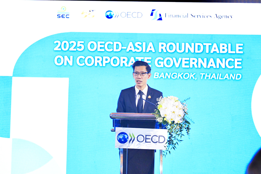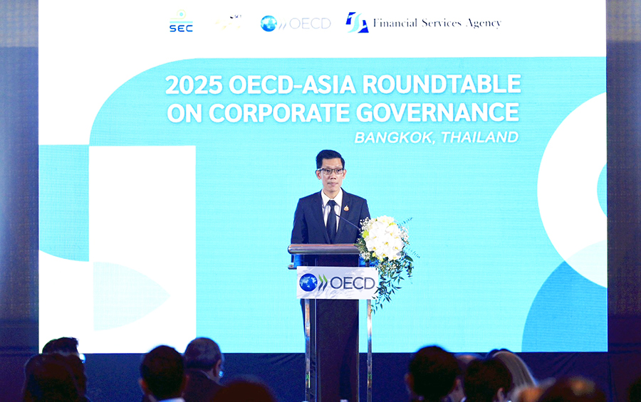 นายเบญจรงค์ สุวรรณคีรี ผู้ช่วยรัฐมนตรีประจำกระทรวงการคลัง เป็นประธานกล่าวเปิดงาน 2025 OECD–Asia Roundtable on Corporate Governance และรับมอบรายงาน OECD Capital Market Review of Thailand 2025 จาก Mr. Carmine De Noia, Director for Financial and Enterprise Affairs, OECD ณ โรงแรม The Athenee Hotel, a Luxury Collection Hotel, Bangkok เมื่อวันที่ 27 พฤศจิกายน 2568