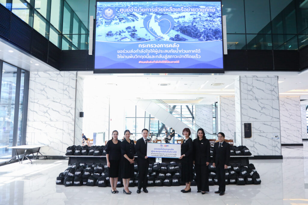 นางสาวศุกร์ศิริ อภิญญานุวัฒน์ รองปลัดกระทรวงการคลัง หัวหน้ากลุ่มภารกิจด้านทรัพย์สิน พร้อมด้วยนางสาวอมรรัตน์ จารุรัตน์ ผู้ช่วยปลัดกระทรวงการคลัง รับมอบสิ่งของที่จำเป็นต่อการดำรงชีวิตประจำวันจากธนาคารเพื่อการส่งออกและนำเข้าแห่งประเทศไทย (Exim bank) เพื่อส่งมอบผ่านศูนย์อำนวยการช่วยเหลือเครือข่ายวายุภักษ์ และนำไปช่วยเหลือบรรเทาความเดือดร้อนอย่างเร่งด่วนให้แก่ประชาชนที่ได้รับผลกระทบจากอุทกภัยในพื้นที่ภาคใต้ ณ บริเวณโถงชั้น 1 อาคาร 150 ปี กระทรวงการคลัง เมื่อวันที่ 2 ธันวาคม 2568