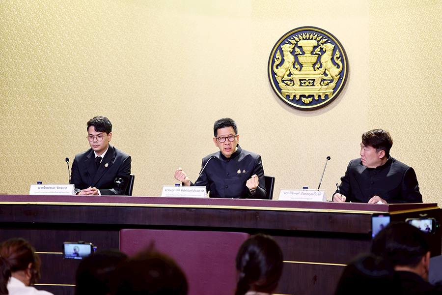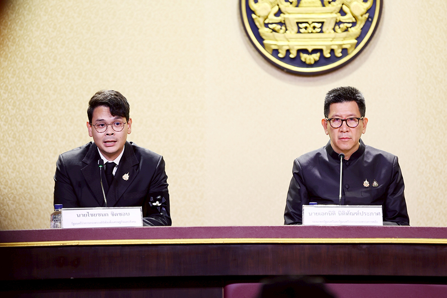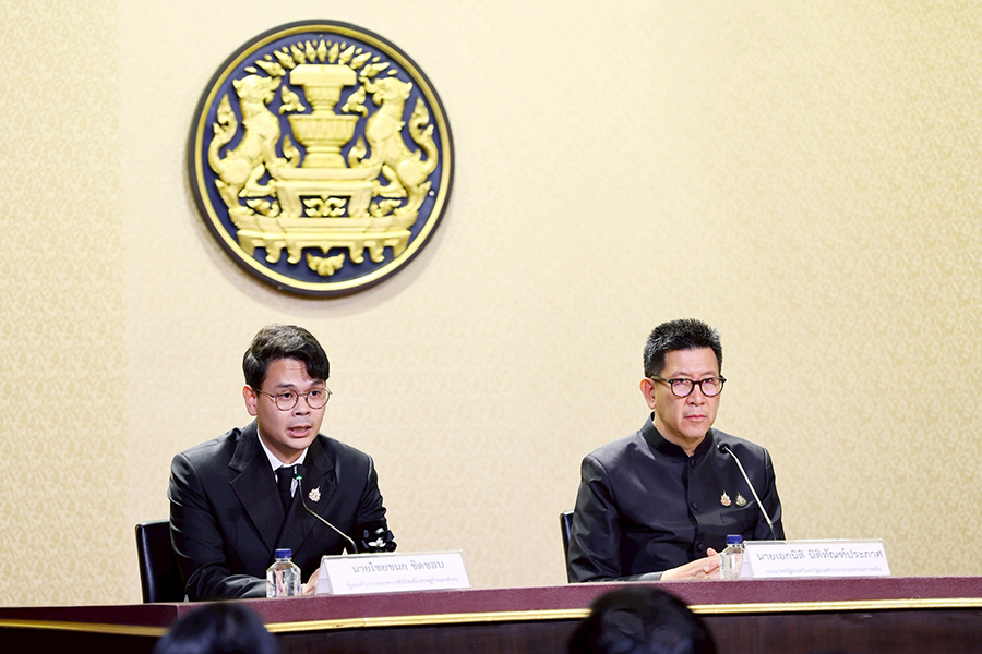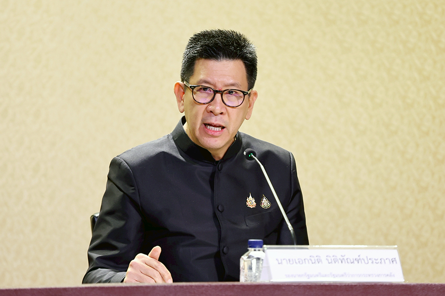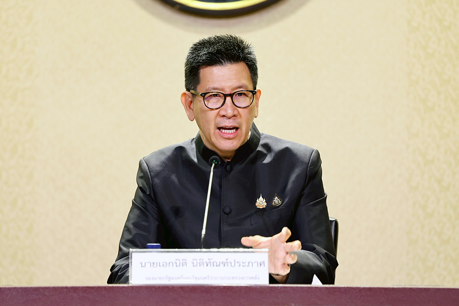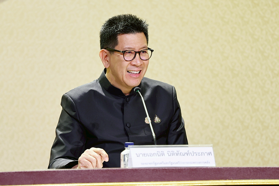 ดร.เอกนิติ นิติทัณฑ์ประภาศ รองนายกรัฐมนตรีและรัฐมนตรีว่าการกระทรวงการคลัง แถลงข่าวผลการประชุมคณะรัฐมนตรี เมื่อวันที่ 2 ธันวาคม 2568 ในประเด็นมาตรการ “Quick Big Win” เพื่อ SMEs ไทย และมาตรการเยียวยาผู้ประสบอุทกภัยในพื้นที่ภาคใต้ โดยมีนายไชยชนก ชิดชอบ รัฐมนตรีว่าการกระทรวงดิจิทัลเพื่อเศรษฐกิจและสังคม และนายสิริพงศ์ อังคสกุลเกียรติ โฆษกประจำสำนักนายกรัฐมนตรี ร่วมแถลงข่าว ณ ศูนย์แถลงข่าวรัฐบาล ตึกนารีสโมสร ทำเนียบรัฐบาล เมื่อวันที่ 2 ธันวาคม 2568