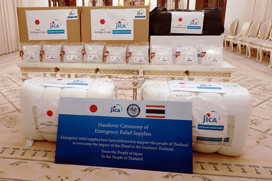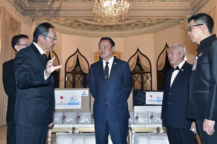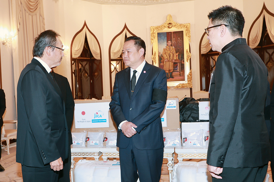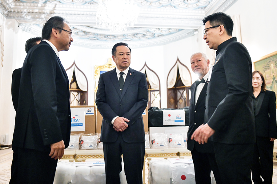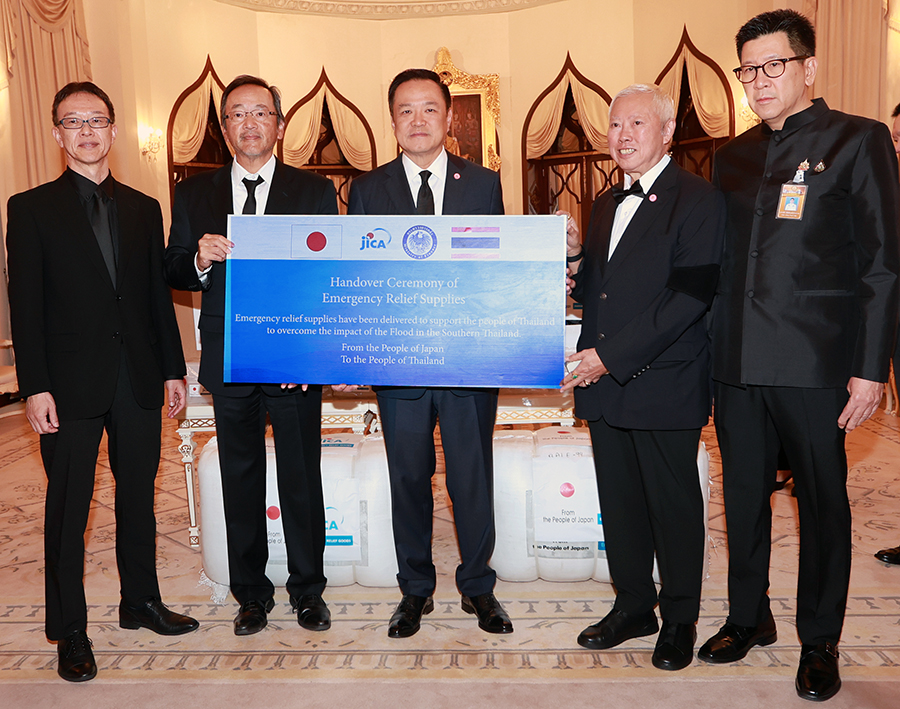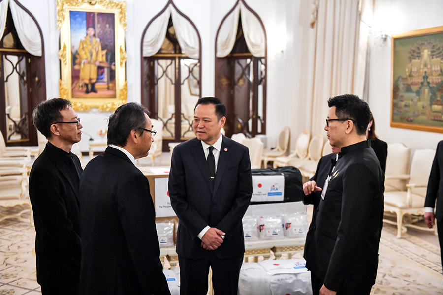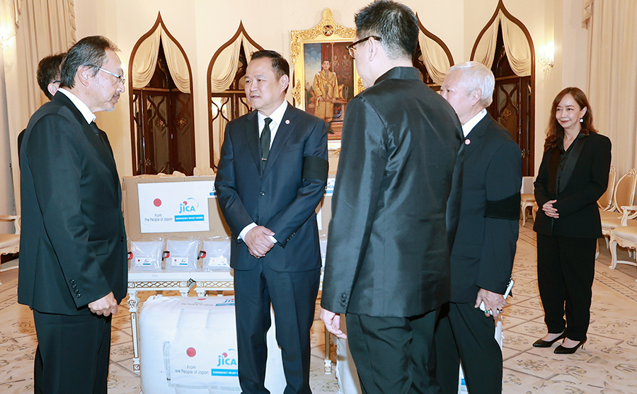 นายอนุทิน ชาญวีรกูล นายกรัฐมนตรีและรัฐมนตรีว่าการกระทรวงมหาดไทย นายบวรศักดิ์ อุวรรณโณ รองนายกรัฐมนตรี และ ดร.เอกนิติ นิติทัณฑ์ประภาศ รองนายกรัฐมนตรีและรัฐมนตรีว่าการกระทรวงการคลัง ร่วมพิธีรับมอบสิ่งของบรรเทาทุกข์เพื่อช่วยเหลือผู้ประสบอุทกภัยในพื้นที่ภาคใต้จากรัฐบาลญี่ปุ่น จากนายมาซาโตะ โอตากะ เอกอัครราชทูตวิสามัญผู้มีอำนาจเต็มแห่งญี่ปุ่นประจำประเทศไทย และ Mr. Shunsuke Sakudo, Chief Representative of JICA Thailand Office โดยมีนายลวรณ แสงสนิท ปลัดกระทรวงการคลัง นายอัครุตม์ สนธยานนท์ อธิบดีกรมธนารักษ์ และนางจินดารัตน์ วิริยะทวีกุล ผู้อำนวยการสำนักงานบริหารหนี้สาธารณะ เข้าร่วม ทั้งนี้ รัฐบาลญี่ปุ่นผ่านองค์การความร่วมมือระหว่างประเทศแห่งญี่ปุ่น (Japan International Cooperation Agency: JICA) ได้มอบสิ่งของบรรเทาทุกข์ ประกอบด้วย เต็นท์ ผ้าห่ม แผ่นรองนอน ถังบรรจุน้ำพับได้ ผ้าใบเอนกประสงค์ และเครื่องกรองน้ำ ณ ตึกไทยคู่ฟ้า ทำเนียบรัฐบาล เมื่อวันที่ 2 ธันวาคม 2568