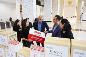 นางสาวอมรรัตน์ จารุรัตน์ ผู้ช่วยปลัดกระทรวงการคลัง รับมอบเครื่องอุปโภคบริโภค และสิ่งของที่จำเป็นต่อการดำรงชีวิตประจำวันจากบริษัท เออร์โกประกันภัย จำกัด เพื่อนำไปช่วยเหลือบรรเทาความเดือดร้อนอย่างเร่งด่วนให้กับประชาชนที่ได้รับผลกระทบจากอุทกภัยในพื้นที่ภาคใต้ ผ่าน “ศูนย์อำนวยการช่วยเหลือเครือข่ายวายุภักษ์” กระทรวงการคลัง ณ บริเวณโถงชั้น 1 อาคาร 150 ปี กระทรวงการคลัง เมื่อวันที่ 8 ธันวาคม 2568