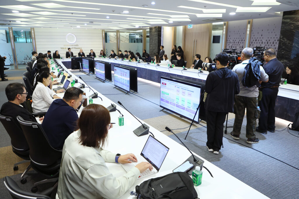 ดร.เอกนิติ นิติทัณฑ์ประภาศ รองนายกรัฐมนตรีและรัฐมนตรีว่าการกระทรวงการคลัง พร้อมด้วย นายเบญจรงค์ สุวรรณคีรี ผู้ช่วยรัฐมนตรีประจำกระทรวงการคลัง นายวินิจ วิเศษสุวรรณภูมิ ผู้อำนวยการสำนักงานเศรษฐกิจการคลัง นางจินดารัตน์ วิริยะทวีกุล ผู้อำนวยการสำนักงานบริหารหนี้สาธารณะ นายชูฉัตร ประมูลผล เลขาธิการคณะกรรมการกำกับและส่งเสริมการประกอบธุรกิจประกันภัย นางพรอนงค์ บุษราตระกูล เลขาธิการสำนักงานคณะกรรมการกำกับหลักทรัพย์และตลาดหลักทรัพย์ และนายอัสสเดช คงสิริ กรรมการและผู้จัดการตลาดหลักทรัพย์แห่งประเทศไทย ร่วมให้ข้อมูลภาพรวมและข้อมูลทางเทคนิคของมาตรการเพิ่มการออมของประชาชน ณ ห้องประชุม 401 ชั้น 4 อาคาร 150 ปี กระทรวงการคลัง เมื่อวันที่ 11 ธันวาคม 2568