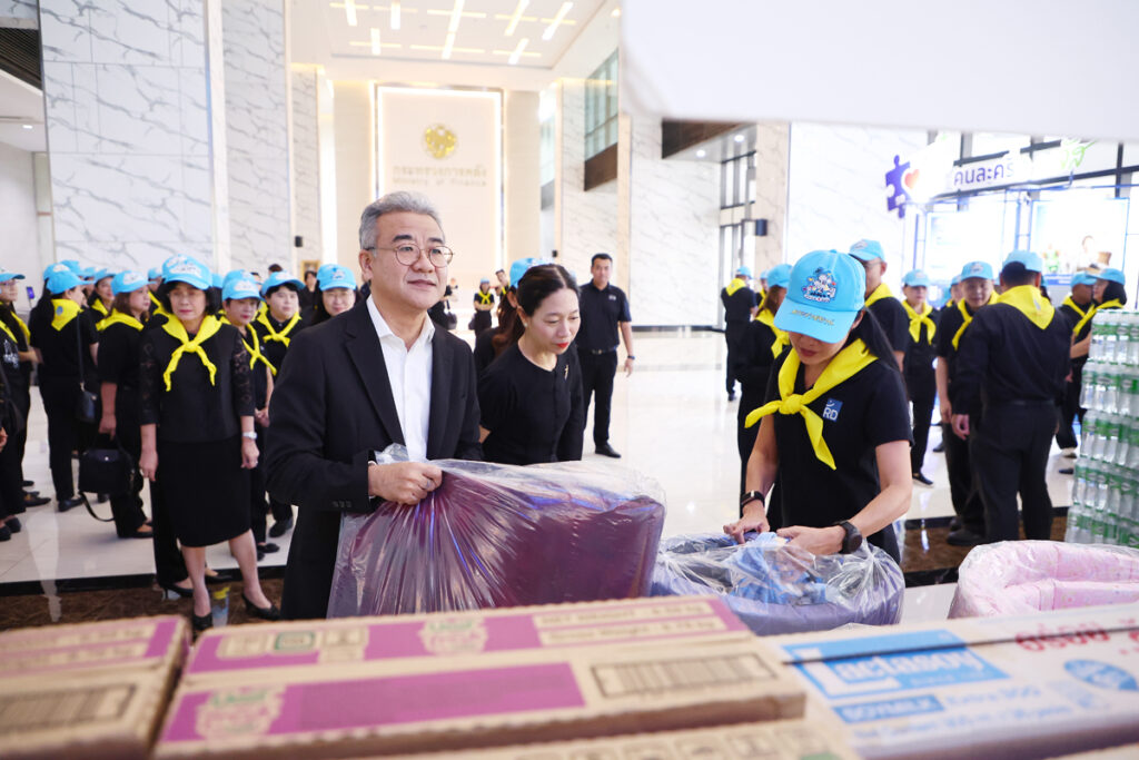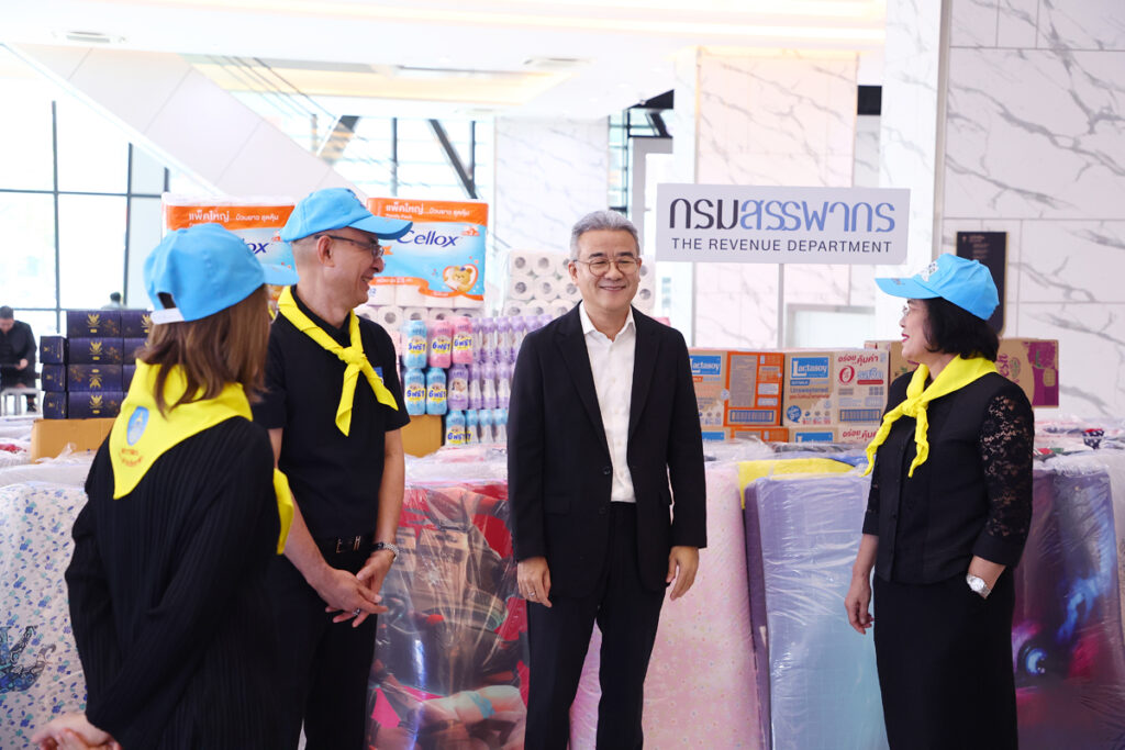 นายอรรถพล อรรถวรเดช รองปลัดกระทรวงการคลัง ปฏิบัติหน้าที่ด้านบริหาร พร้อมด้วยนางสาวอมรรัตน์ จารุรัตน์ ผู้ช่วยปลัดกระทรวง รับมอบเครื่องอุปโภคบริโภค และสิ่งของจำเป็น จาก ดร.กุลยา ตันติเตมิท อธิบดีกรมสรรพากร และเจ้าหน้าที่กรมสรรพากร เพื่อร่วมกิจกรรมจิตอาสาบำเพ็ญสาธารณประโยชน์และบำเพ็ญสาธารณกุศล เนื่องในวันคล้ายวันพระบรมราชสมภพ พระบาทสมเด็จพระบรมชนกาธิเบศร มหาภูมิพลอดุลยเดชมหาราช บรมนาถบพิตร วันชาติ และวันพ่อแห่งชาติ 5 ธันวาคม 2568 โดยบริจาคสิ่งของดังกล่าว เพื่อนำไปช่วยเหลือบรรเทาความเดือดร้อนอย่างเร่งด่วนให้กับประชาชนที่ได้รับผลกระทบจากอุทกภัยในพื้นที่ภาคใต้ ผ่าน “ศูนย์อำนวยการช่วยเหลือเครือข่ายวายุภักษ์” ณ บริเวณโถงชั้น 1 อาคาร 150 ปี กระทรวงการคลัง เมื่อวันที่ 11 ธันวาคม 2568