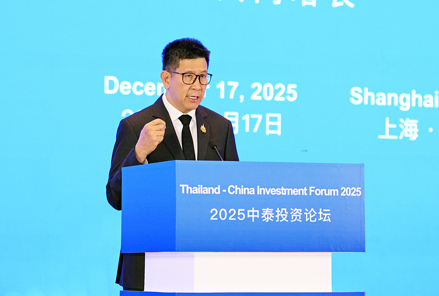 ดร.เอกนิติ นิติทัณฑ์ประภาศ รองนายกรัฐมนตรีและรัฐมนตรีว่าการกระทรวงการคลัง ปาฐกถาพิเศษในงาน Thailand–China Investment Forum 2025 โดยได้เน้นย้ำถึงบทบาทสำคัญของความร่วมมือด้านการค้าและการลงทุนระหว่างไทยและจีน ซึ่งเป็นแรงขับเคลื่อนสำคัญต่อการพัฒนาเศรษฐกิจและอุตสาหกรรมของไทยมาอย่างต่อเนื่อง ทั้งนี้ รองนายกรัฐมนตรีและรัฐมนตรีว่าการกระทรวงการคลัง ได้กล่าวถึงบริบทเศรษฐกิจโลกที่ยังคงมีความไม่แน่นอน แต่ไทยและจีนยังมีศักยภาพสูงในการต่อยอดความร่วมมือ โดยเฉพาะในสาขาอุตสาหกรรมแห่งอนาคต อาทิ ดิจิทัล พลังงานสะอาด ยานยนต์ไฟฟ้า และเทคโนโลยีขั้นสูง ในโอกาสนี้ ได้นำเสนอแนวนโยบายเศรษฐกิจของรัฐบาลภายใต้กรอบแนวคิด “Quick Big Win” โดยให้ความสำคัญกับเสาหลัก “การลงทุนเพื่ออนาคต” พร้อมเน้นย้ำกลไก Thailand Fast Pass ที่ช่วยเร่งรัดขั้นตอนการอนุมัติและอำนวยความสะดวกให้นักลงทุนสามารถเริ่มดำเนินธุรกิจในประเทศไทยได้อย่างรวดเร็วยิ่งขึ้น โดยการจัดงานครั้งนี้มีเป้าหมายเพื่อสร้างความเชื่อมั่นและอัพเดททิศทางนโยบายด้านเศรษฐกิจและการลงทุนของไทยให้แก่นักลงทุนจีน ซึ่งเป็นนักลงทุนกลุ่มสำคัญของประเทศ โดยมีนักลงทุนและผู้แทนภาคเอกชนจากอุตสาหกรรมเชิงยุทธศาสตร์เข้าร่วมกว่า 550 ราย สะท้อนถึงบทบาทของประเทศไทยในการเป็นจุดหมายการลงทุนที่สำคัญของนักลงทุนจีนในภูมิภาค ภายในงานดังกล่าว นายนฤตม์ เทอดสถีรศักดิ์ เลขาธิการคณะกรรมการส่งเสริมการลงทุน พร้อมทั้งผู้แทนภาครัฐและเอกชนจีนร่วมแลกเปลี่ยนมุมมอง โดยมีการนำเสนอทั้งทิศทางการส่งเสริมการลงทุนของไทย แนวทางด้านกฎระเบียบสำหรับนักลงทุนจีนในต่างประเทศ และประสบการณ์จริงในการลงทุนจัดตั้งธุรกิจในประเทศไทย ณ นครเซี่ยงไฮ้ สาธารณรัฐประชาชนจีน เมื่อวันที่ 17 ธันวาคม 2568