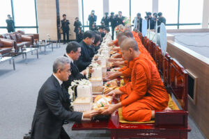 ดร.เอกนิติ นิติทัณฑ์ประภาศ รองนายกรัฐมนตรีและรัฐมนตรีว่าการกระทรวงการคลัง เป็นประธานในพิธีเจริญพระพุทธมนต์และทำบุญตักบาตร เนื่องในวันขึ้นปีใหม่ พ.ศ. 2569 โดยมีนายลวรณ แสงสนิท ปลัดกระทรวงการคลัง และคณะผู้บริหารกระทรวงการคลัง ข้าราชการ พนักงาน เจ้าหน้าที่ หน่วยงานราชการ รัฐวิสาหกิจในสังกัด และหน่วยงานในกำกับของกระทรวงการคลัง เข้าร่วมในพิธี ณ ห้องประชุมกำปั่นเงิน ชั้น 21 อาคาร 150 ปี กระทรวงการคลัง เมื่อวันที่ 9 มกราคม 2569