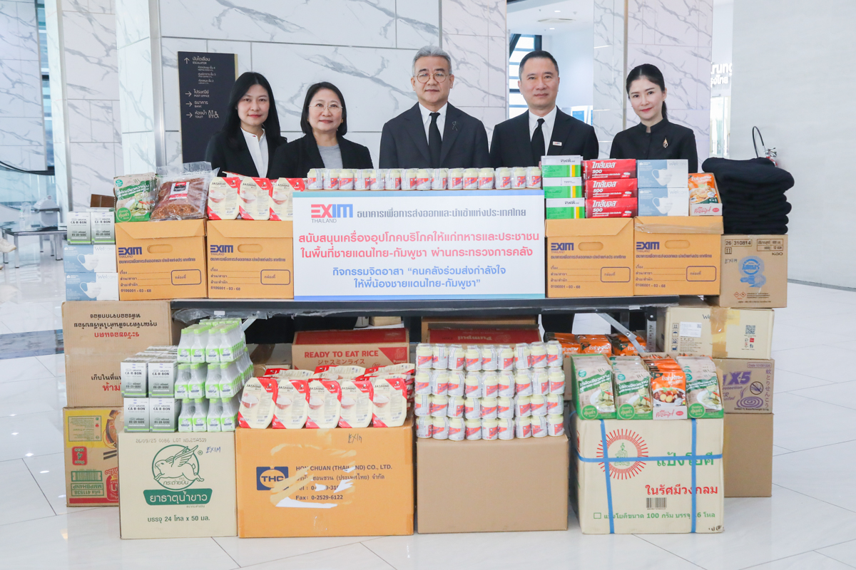 นายอรรถพล อรรถวรเดช รองปลัดกระทรวงการคลัง ด้านบริหาร รับมอบเครื่องอุปโภคบริโภค จากนายชลัช รัตนบุญนิธิ กรรมการผู้จัดการ และนางสาวดรัสวันต์ ชูวงษ์ รองกรรมการผู้จัดการ ธนาคารเพื่อการส่งออกและนำเข้าแห่งประเทศไทย (EXIM BANK) เพื่อส่งมอบให้แก่ทหารและประชาชนในพื้นที่ชายแดนไทย-กัมพูชา ในกิจกรรมจิตอาสา “คนคลังร่วมส่งกำลังใจ ให้พี่น้องชายแดนไทย-กัมพูชา” เพื่อสนับสนุนผู้ปฏิบัติหน้าที่ดูแลประชาชนและประเทศชาติ ตลอดจนช่วยเหลือและบรรเทาความเดือดร้อนให้กับประชาชนจากเหตุการณ์ชายแดนผ่าน “ศูนย์อำนวยการช่วยเหลือเครือข่ายวายุภักษ์” กระทรวงการคลัง ณ บริเวณโถงชั้น 1 อาคาร 150 ปี กระทรวงการคลัง เมื่อวันที่ 9 มกราคม 2569