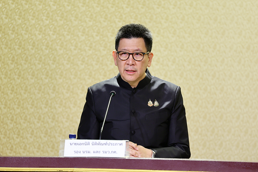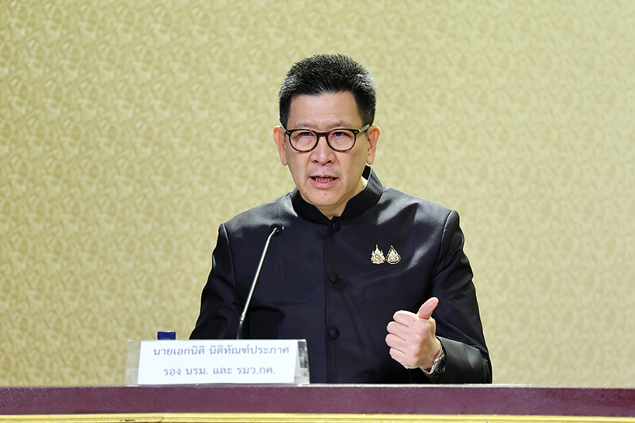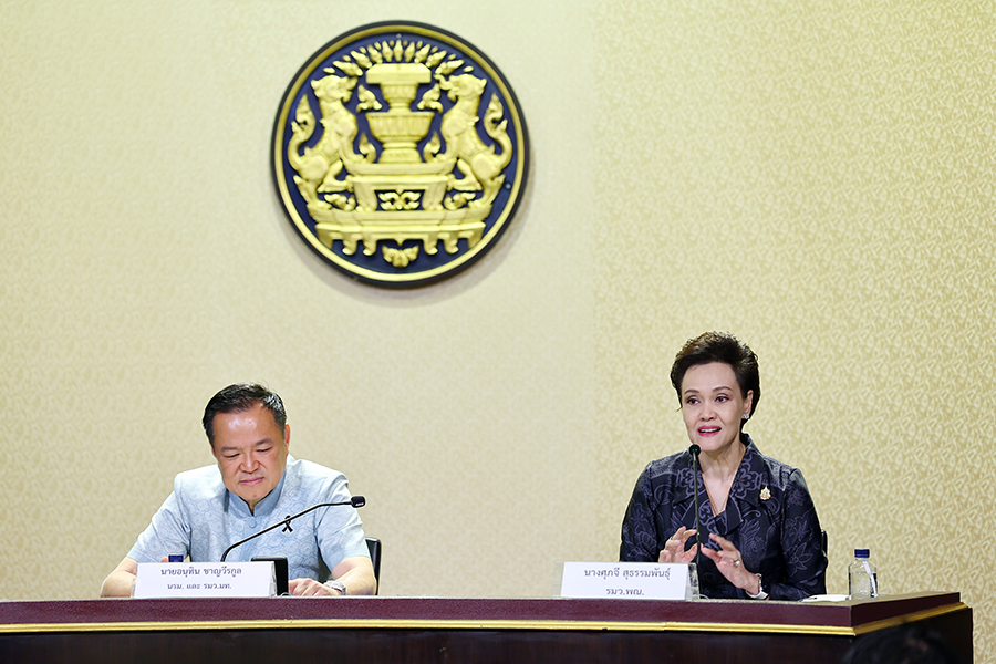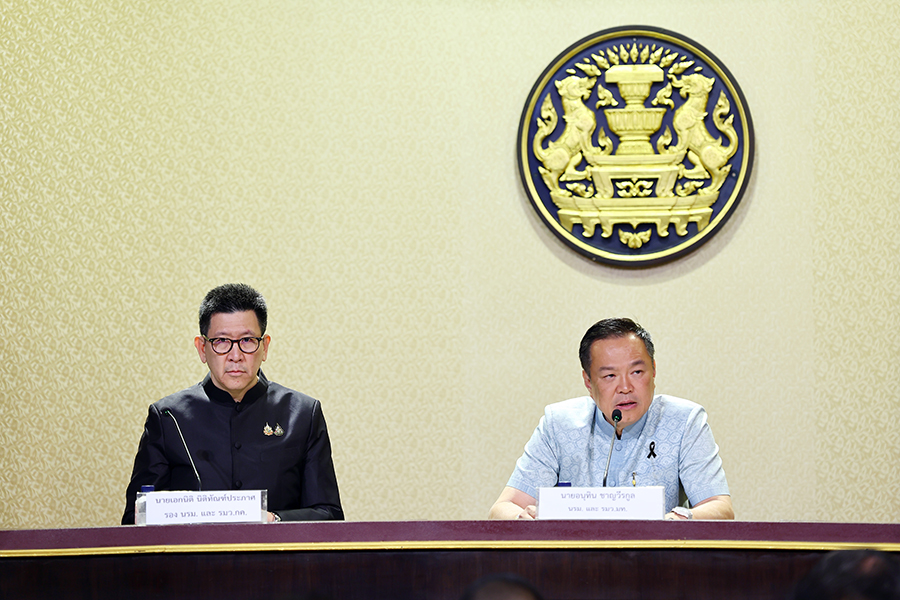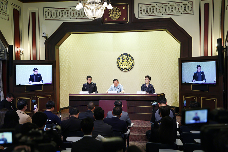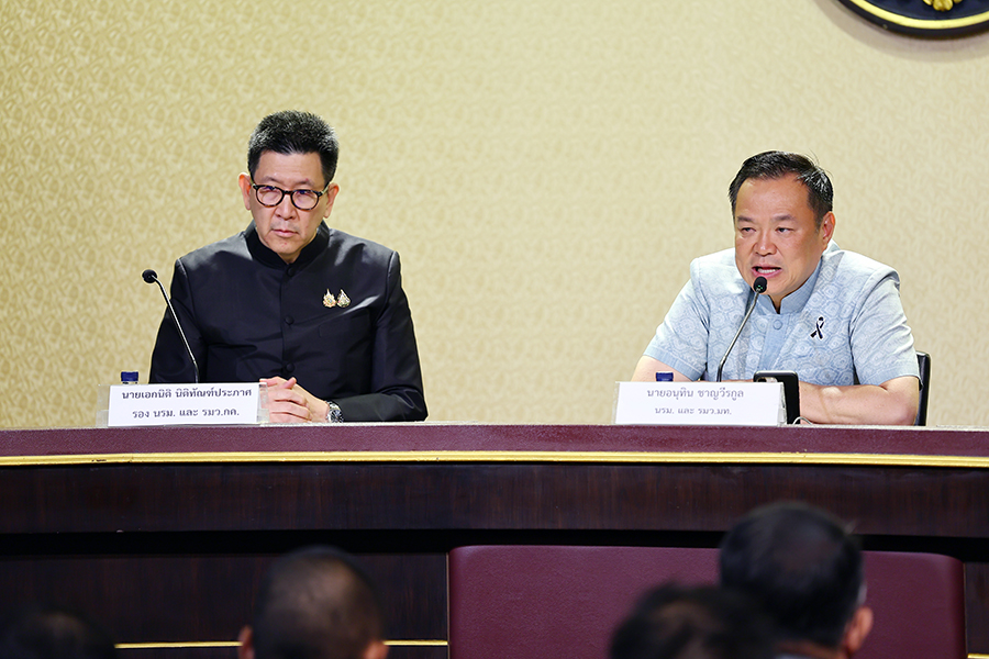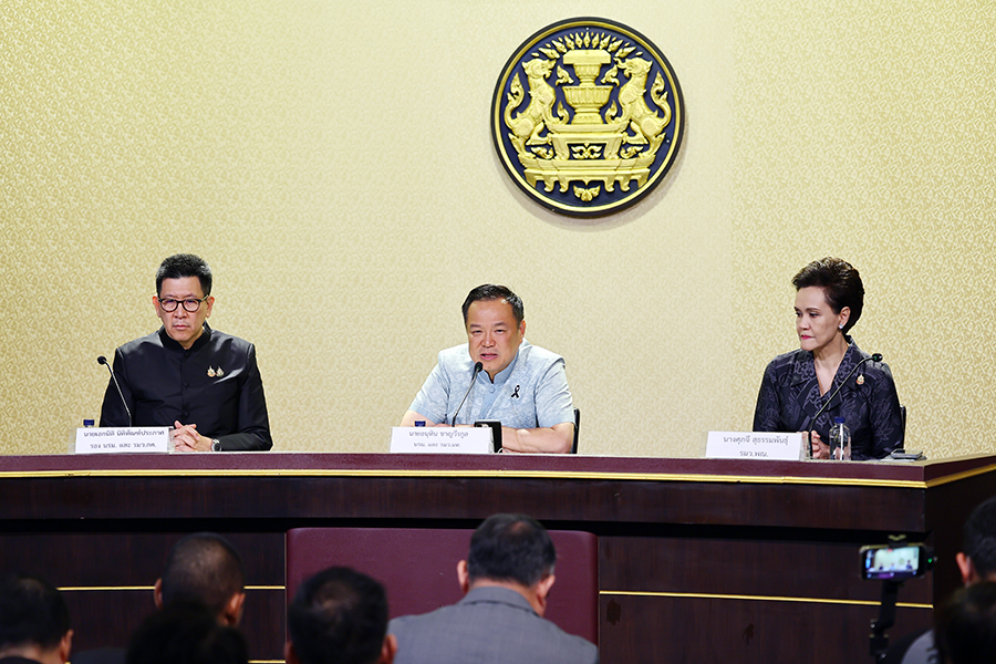นายอนุทิน ชาญวีรกูล นายกรัฐมนตรีและรัฐมนตรีว่าการกระทรวงมหาดไทย พร้อมด้วย ดร.เอกนิติ นิติทัณฑ์ประภาศ รองนายกรัฐมนตรีและรัฐมนตรีว่าการกระทรวงการคลัง และนางศุภจี สุธรรมพันธุ์ รัฐมนตรีว่าการกระทรวงพาณิชย์ ร่วมแถลงข่าวผลสรุปการเดินทางเข้าร่วมการประชุม World Economic Forum (WEF) Annual Meeting 2026 ณ เมืองดาวอส สมาพันธรัฐสวิส ระหว่างวันที่ 19–23 มกราคม 2569 ณ ศูนย์แถลงข่าวรัฐบาล ตึกนารีสโมสร ทำเนียบรัฐบาล เมื่อวันที่ 27 มกราคม 2569