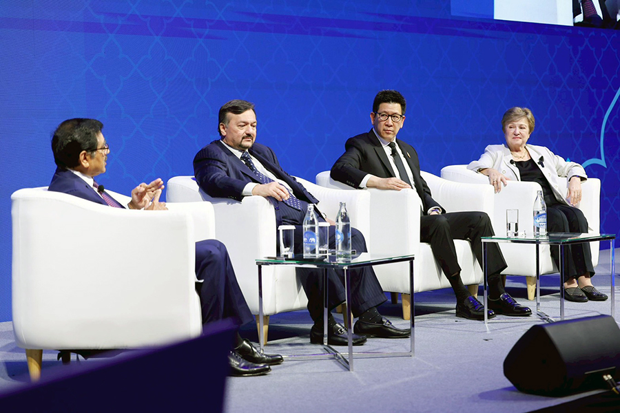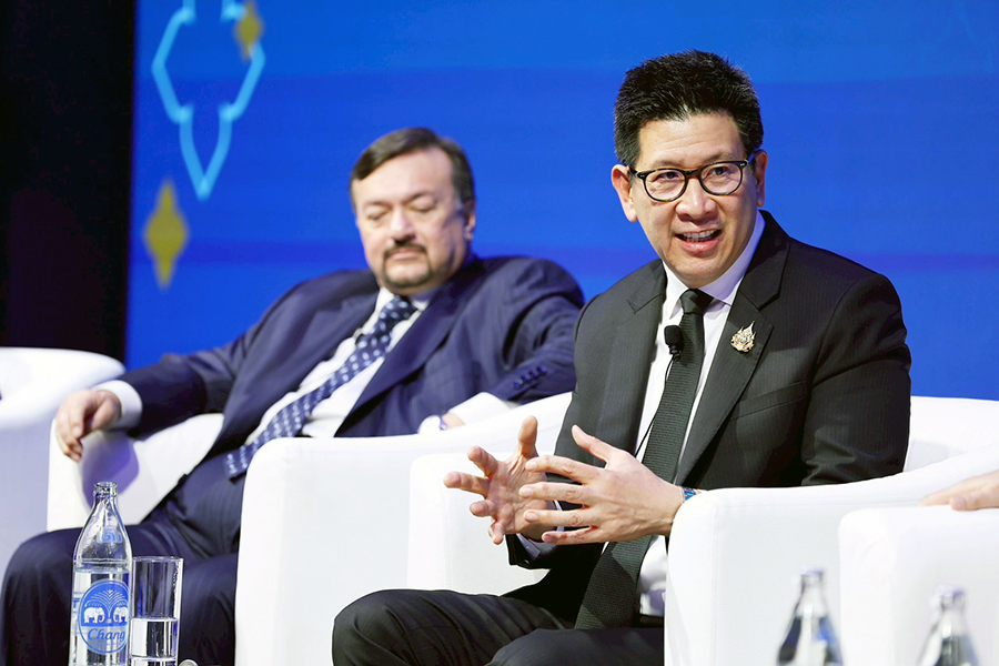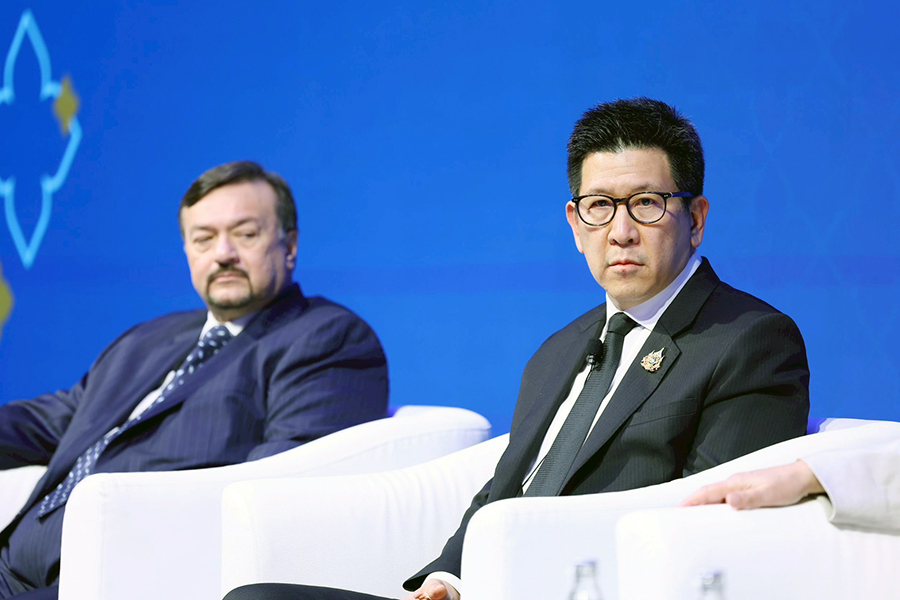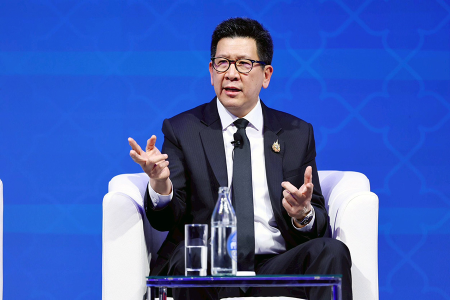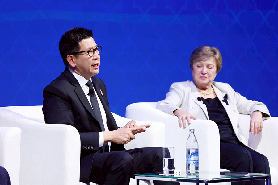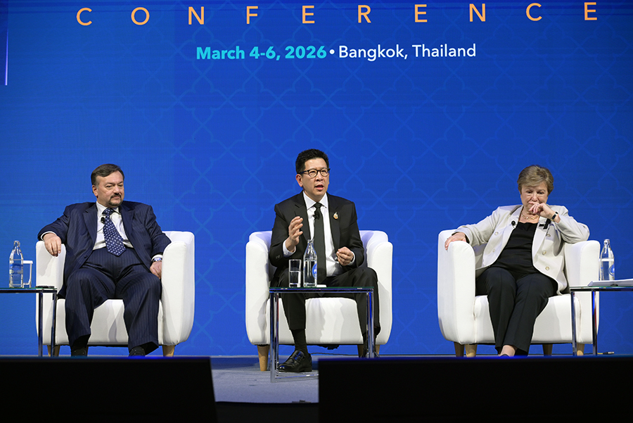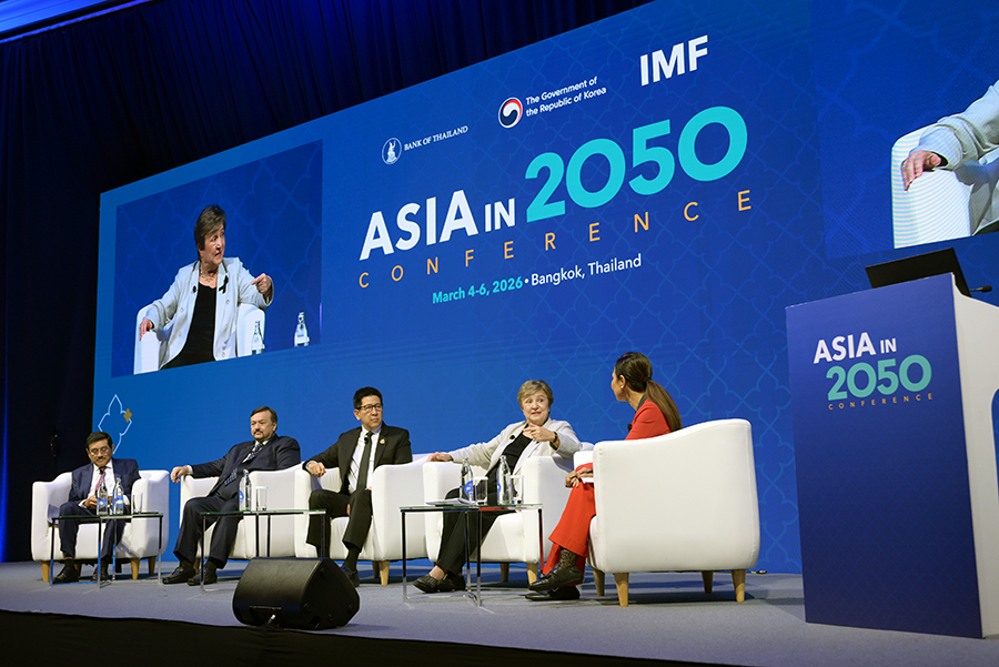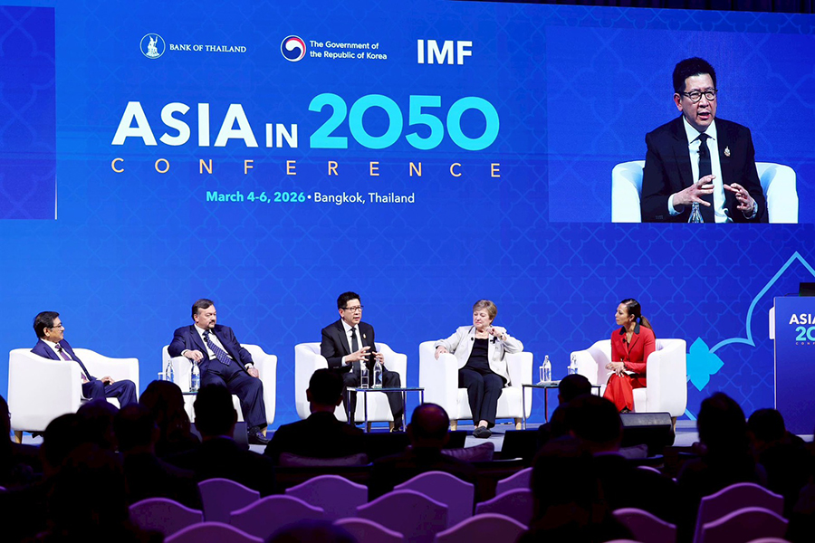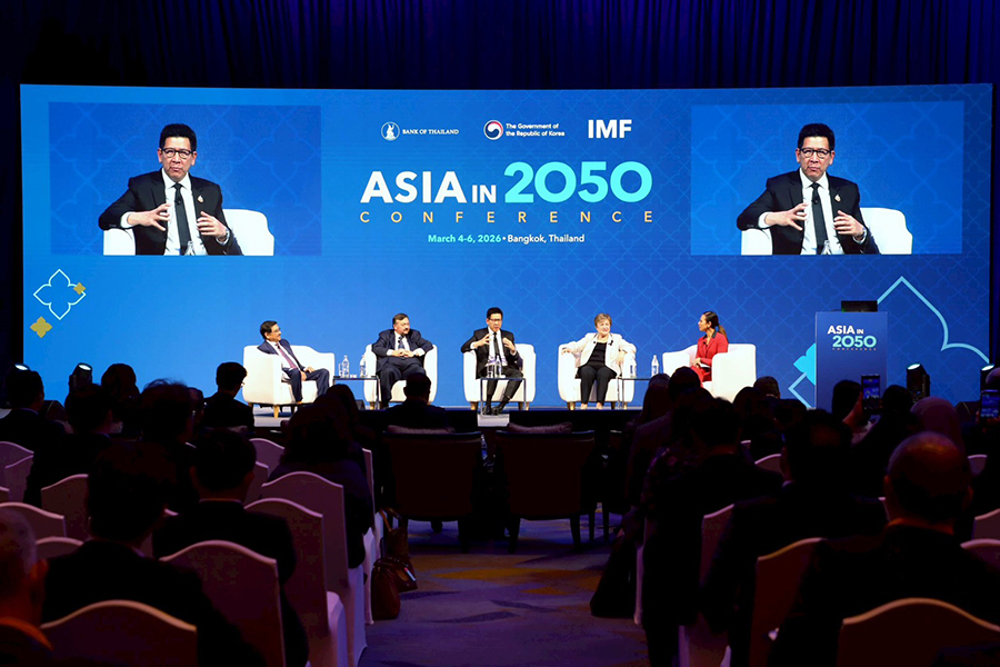 ดร.เอกนิติ นิติทัณฑ์ประภาศ รองนายกรัฐมนตรีและรัฐมนตรีว่าการกระทรวงการคลัง ร่วมการเสวนาในเวที High-level Roundtable: Bringing Everything Together – Policy Challenges for Asia Going Forward ภายในงาน Asia in 2050 Conference กับผู้นำทางนโยบายเศรษฐกิจระดับโลก ประกอบด้วย Mr. Amir Hamzah Azizan รัฐมนตรีว่าการกระทรวงการคลัง (คนที่สอง) แห่งมาเลเซีย Dr. P. Nandalal Weerasinghe ผู้ว่าการธนาคารกลางศรีลังกา Dr. Kristalina Georgieva กรรมการจัดการกองทุนการเงินระหว่างประเทศ (IMF) โดยมี Ms. Haslinda Amin จากสำนักข่าว Bloomberg เป็นผู้ดำเนินรายการ ซึ่งเป็นเวทีสำคัญในการแลกเปลี่ยนมุมมองต่อทิศทางเศรษฐกิจเอเชียในระยะข้างหน้า ท่ามกลางความท้าทายของเศรษฐกิจโลก ทั้งจากความตึงเครียดทางภูมิรัฐศาสตร์ การเปลี่ยนแปลงของระบบการค้าโลก เทคโนโลยีใหม่ และความเสี่ยงจากการเปลี่ยนแปลงสภาพภูมิอากาศ ณ โรงแรมแชงกรีล่า กรุงเทพฯ เมื่อวันที่ 6 มีนาคม 2569