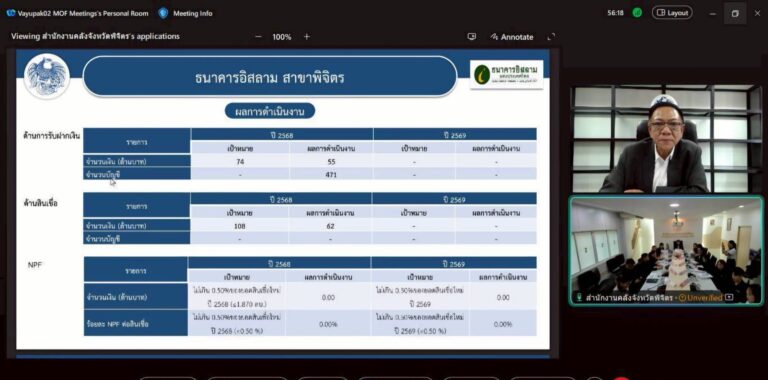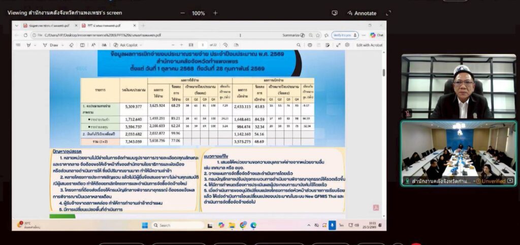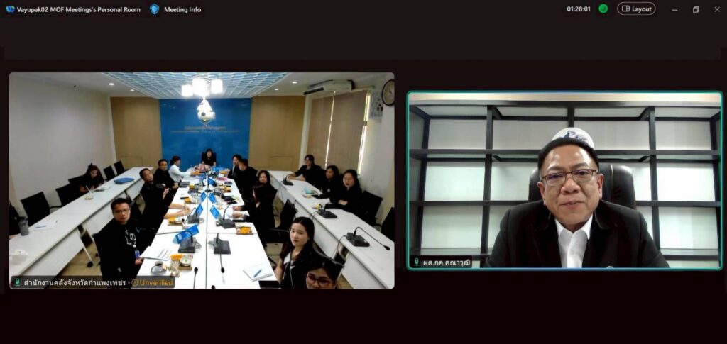 นายคณาวุฒิ สิติธีรพันธุ์ ผู้ตรวจราชการกระทรวงการคลัง ตรวจราชการติดตามผลการปฏิบัติงานของส่วนราชการและรัฐวิสาหกิจสังกัดกระทรวงการคลังในจังหวัดกำแพงเพชร เพื่อรับทราบผลการปฏิบัติงานตามนโยบายของกระทรวงการคลังและภารกิจที่รับมอบหมาย ตลอดจนรับฟังปัญหาและอุปสรรคในการปฏิบัติงาน ผ่านสื่ออิเล็กทรอนิกส์ (VDO Conference) เมื่อวันที่ 25 มีนาคม 2569