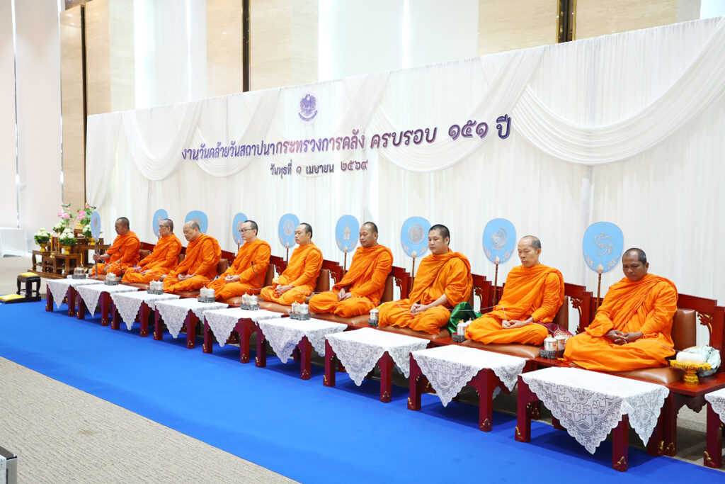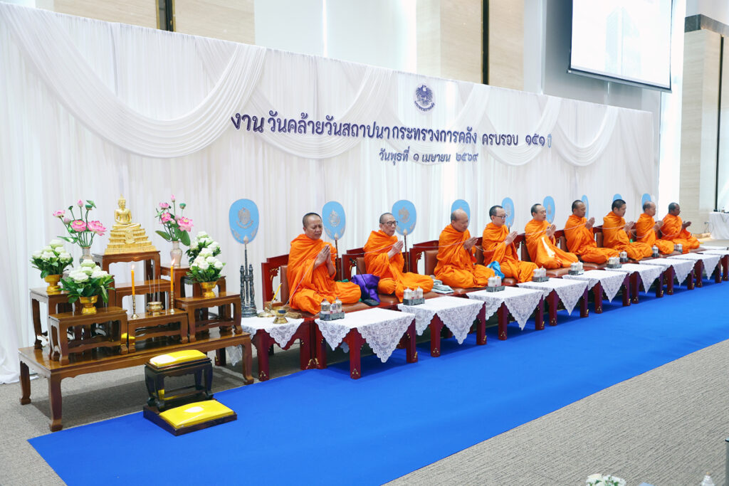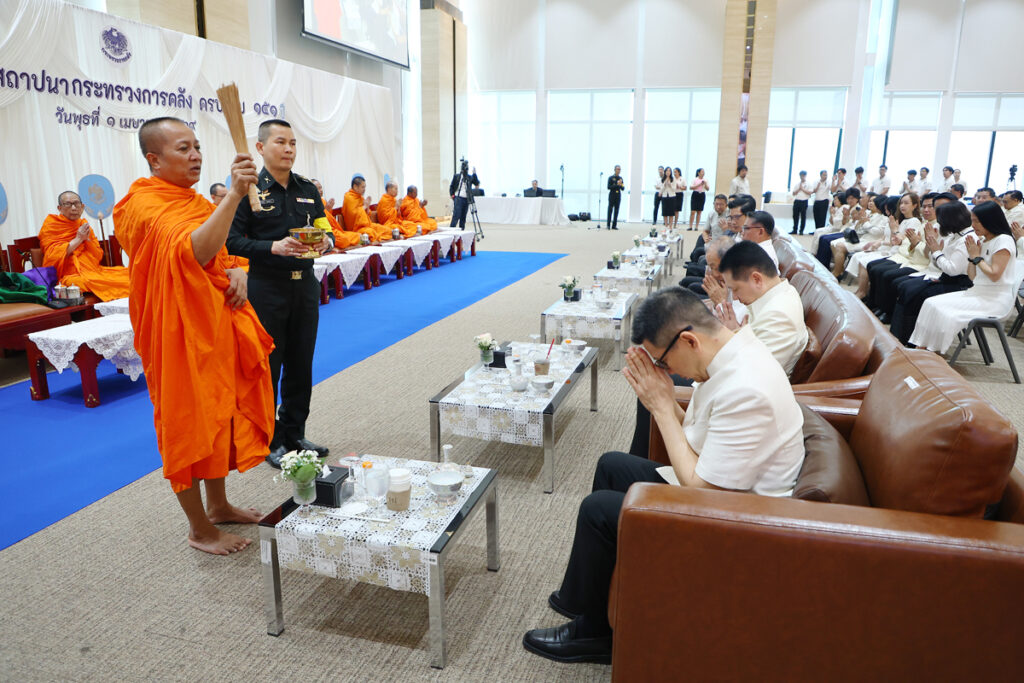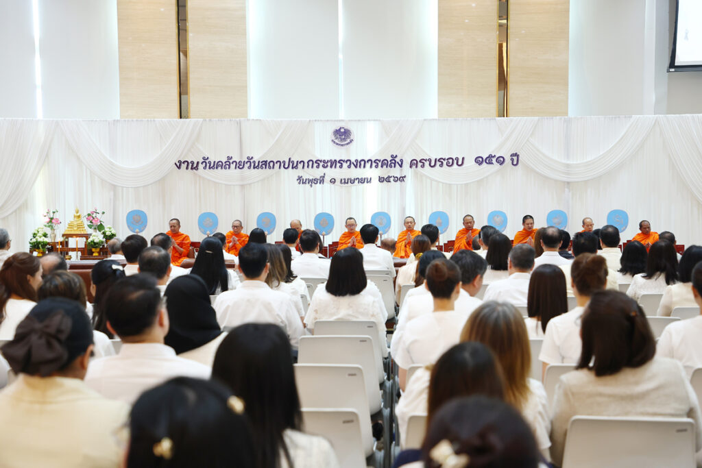 ดร.เอกนิติ นิติทัณฑ์ประภาศ รองนายกรัฐมนตรี และรัฐมนตรีว่าการกระทรวงการคลัง เป็นประธานในพิธีเจริญพระพุทธมนต์ เนื่องในโอกาสวันสถาปนากระทรวงการคลัง ครบรอบ 151 ปี โดยมี ดร.เบญจรงค์ สุวรรณคีรี ผู้ช่วยรัฐมนตรีประจำกระทรวงการคลัง นายอาร์ชวัส เจริญศิลป์ เลขานุการรัฐมนตรีว่าการกระทรวงการคลัง พร้อมด้วยนายลวรณ แสงสนิท ปลัดกระทรวงการคลัง คณะผู้บริหารระดับสูงกระทรวงการคลัง ข้าราชการ เจ้าหน้าที่กระทรวงการคลัง เข้าร่วมในพิธีฯ ในโอกาสนี้กระทรวงการคลัง ได้รับเกียรติจากอดีตปลัดกระทรวงการคลัง และอดีตผู้บริหารระดับสูงของกระทรวงการคลัง ให้เกียรติเข้าร่วมในพิธีวันสถาปนากระทรวงการคลัง ประจำปี 2569 ณ ห้องกำปั่นทอง ชั้น 21 อาคาร 150 ปี กระทรวงการคลัง เมื่อวันที่ 1 เมษายน 2569