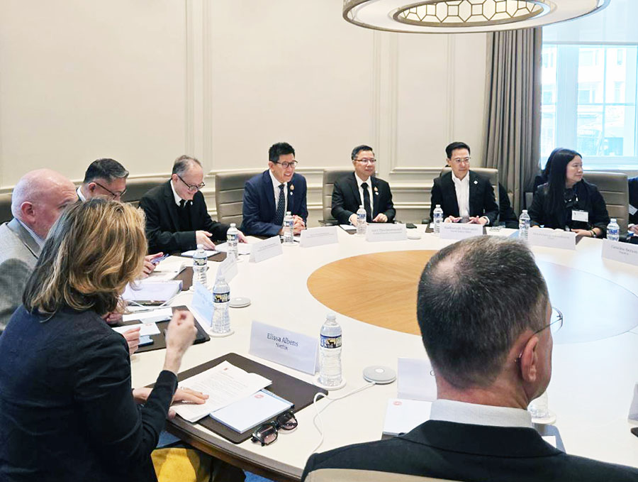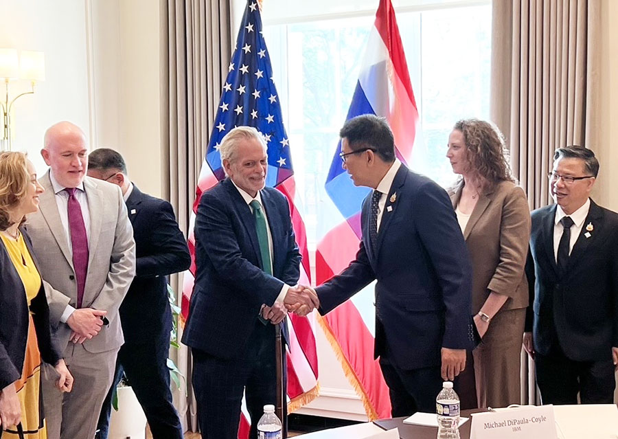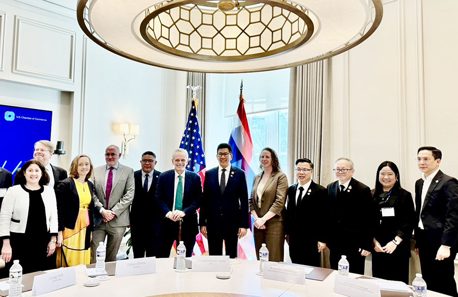 ดร.เอกนิติ นิติทัณฑ์ประภาศ รองนายกรัฐมนตรีและรัฐมนตรีว่าการกระทรวงการคลัง ร่วมการประชุมหารือกับสภาหอการค้าสหรัฐอเมริกา (US Chamber of Commerce) ในระหว่างการประชุมสภาผู้ว่าการธนาคารโลกและกองทุนการเงินระหว่างประเทศ (Spring Meetings) ปี 2569 ทั้งนี้ รองนายกรัฐมนตรีและรัฐมนตรีว่าการกระทรวงการคลัง ได้ให้ความมั่นใจกับผู้แทนสภาหอการค้าสหรัฐอเมริกาว่ารัฐบาลไทยปัจจุบันมีเสถียรภาพสูงและเล็งเห็นความสำคัญของความร่วมมือและการลงทุนระหว่างไทยและสหรัฐ โดยเฉพาะอย่างยิ่งในมิติของการยกระดับเทคโนโลยีและทักษะแรงงานในอุตสาหกรรมในประเทศไทย โดยผู้แทนสภาหอการค้าสหรัฐอเมริกาได้กล่าวยืนยันถึงความสำคัญของประเทศไทยต่อการลงทุนของนักธุรกิจสหรัฐและมีความประสงค์ที่จะขยายการลงทุนในประเทศไทยต่อไป ณ กรุงวอชิงตัน ดี.ซี. สหรัฐอเมริกา สหรัฐอเมริกา เมื่อวันที่ 14 เมษายน 2569