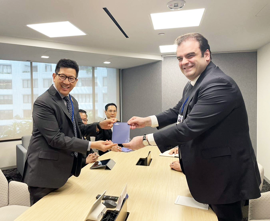ดร.เอกนิติ นิติทัณฑ์ประภาศ รองนายกรัฐมนตรีและรัฐมนตรีว่าการกระทรวงการคลัง ร่วมการประชุมหารือทวิภาคีกับนาย Kyriakos Pierrakakis ประธาน EuroGroup และรัฐมนตรีว่าการกระทรวงเศรษฐกิจและการคลัง สาธารณรัฐเฮลเลนิก (กรีซ) เพื่อแลกเปลี่ยนมุมมองต่อสถานการณ์เศรษฐกิจโลกและผลกระทบต่อสหภาพยุโรปและประเทศไทย พร้อมทั้งเสริมสร้างความร่วมมือด้านเศรษฐกิจ ในห้วงการประชุมสภาผู้ว่าการธนาคารโลกและกองทุนการเงินระหว่างประเทศ (Spring Meetings) ปี 2569 ณ กรุงวอชิงตัน ดี.ซี. สหรัฐอเมริกา เมื่อวันที่ 15 เมษายน 2569