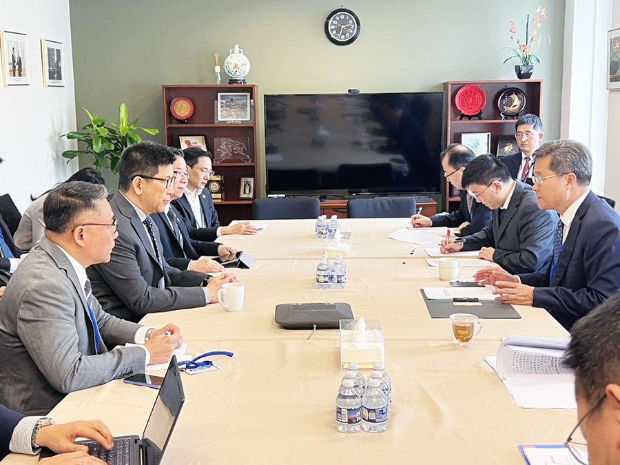ดร.เอกนิติ นิติทัณฑ์ประภาศ รองนายกรัฐมนตรีและรัฐมนตรีว่าการกระทรวงการคลัง ร่วมการประชุมหารือทวิภาคีกับนายหลาน ฝัว อัน รัฐมนตรีว่าการกระทรวงการคลังสาธารณรัฐประชาชนจีน เพื่อแลกเปลี่ยนมุมมองต่อสถานการณ์เศรษฐกิจโลกและเสริมสร้างความร่วมมือด้านเศรษฐกิจและความสัมพันธ์ทวิภาคีให้แน่นแฟ้นยิ่งขึ้น ในห้วงการประชุมสภาผู้ว่าการธนาคารโลกและกองทุนการเงินระหว่างประเทศ (Spring Meetings) ปี 2569 ณ กรุงวอชิงตัน ดี.ซี. สหรัฐอเมริกา เมื่อวันที่ 15 เมษายน 2569