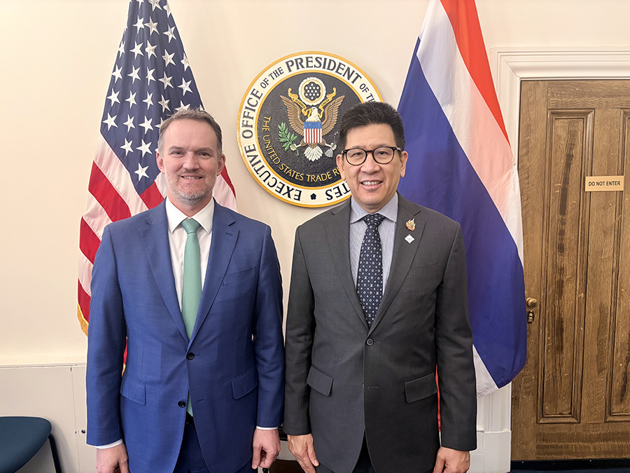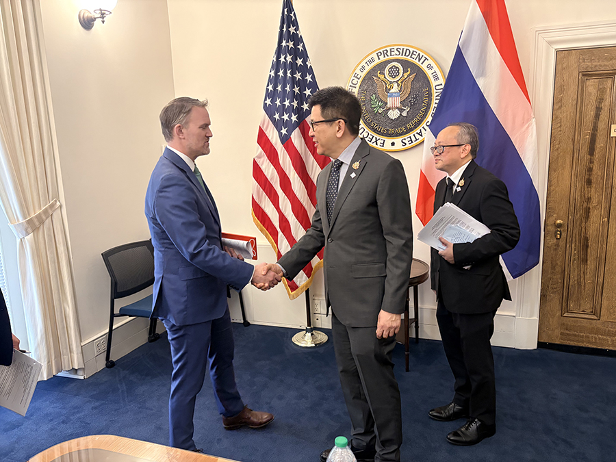 ดร.เอกนิติ นิติทัณฑ์ประภาศ รองนายกรัฐมนตรีและรัฐมนตรีว่าการกระทรวงการคลัง และ Ambassador Jamieson Greer ผู้แทนการค้าสหรัฐฯ (USTR) พบปะหารือเพื่อกระชับความสัมพันธ์ทางเศรษฐกิจการค้าระหว่างประเทศไทยและสหรัฐอเมริกา ในช่วงการเยือนกรุงวอชิงตัน ดี.ซี. สหรัฐอเมริกา เพื่อเข้าร่วมการประชุม IMF/ World Bank Spring Meetings 2026 เมื่อวันที่ 15 เมษายน 2569