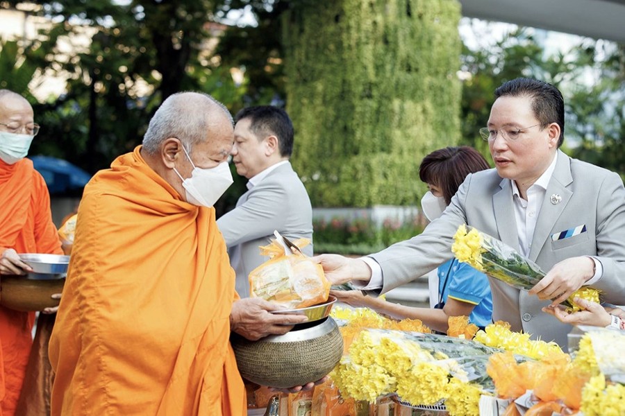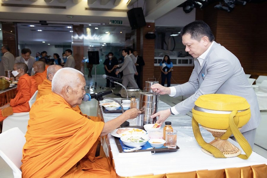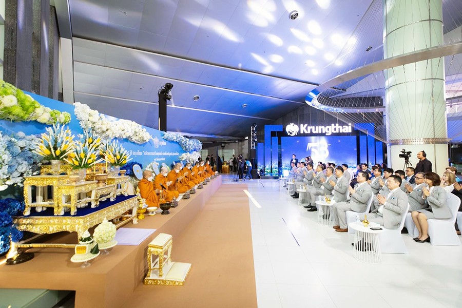 นายลวรณ แสงสนิท ปลัดกระทรวงการคลัง ในฐานะประธานกรรมการธนาคารกรุงไทย พร้อมคณะกรรมการ และผู้บริหาร นำโดยนายผยง ศรีวณิช กรรมการผู้จัดการใหญ่ ร่วมทำบุญตักบาตรพระสงฆ์ 59 รูป เนื่องในโอกาสครบรอบ 58 ปี ธนาคารกรุงไทย โดยได้รับเมตตาจาก “พระธรรมวชิรญาณ (จิรพล อธิจิตโต)” เจ้าอาวาสวัดบวรนิเวศวิหาร ในการเจริญพระพุทธมนต์ และมอบโอวาสให้กับคณะกรรมการ ผู้บริหารและพนักงาน เพื่อเป็นสิริมงคลในการเริ่มต้นสู่ปีที่ 59 อย่างมั่นคง พร้อมจัดกิจกรรมการกุศล เชิญชวนพนักงานและผู้มีจิตศรัทธา ร่วมบริจาคสบทบทุนจัดหาอุปกรณ์การแพทย์ให้กับโรงพยาบาลขอนแก่น ผ่านบริการ e-Donation เพื่อให้ประชาชนในพื้นที่และจังหวัดใกล้เคียง ได้รับการรักษาพยาบาลที่มีประสิทธิภาพยิ่งขึ้น ณ ธนาคารกรุงไทย อาคารสำนักงานใหญ่ นานาเหนือ เมื่อวันที่ 14 มีนาคม 2567