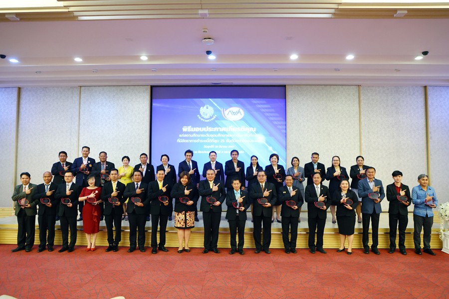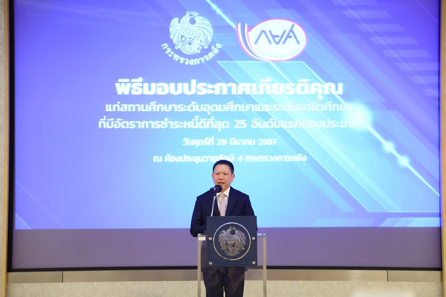 นายลวรณ แสงสนิท ปลัดกระทรวงการคลัง และประธานกรรมการกองทุนเงินให้กู้ยืมเพื่อการศึกษา (กยศ.) เป็นประธานมอบประกาศเกียรติคุณแก่สถานศึกษาระดับอุดมศึกษา 25 แห่ง และระดับอาชีวศึกษา 25 แห่ง ที่มีอัตราชำระหนี้ดีที่สุดของประเทศ เพื่อเป็นการยกย่องเชิดชูเกียรติ และสร้างขวัญกำลังใจในการดำเนินงานของสถานศึกษา โดยมีนายชัยณรงค์ กัจฉปานันท์ ผู้จัดการกองทุนเงินให้กู้ยืมเพื่อการศึกษา กล่าวรายงาน ณ ห้องประชุมวายุภักษ์ 4 กระทรวงการคลัง เมื่อวันที่ 29 มีนาคม 2567