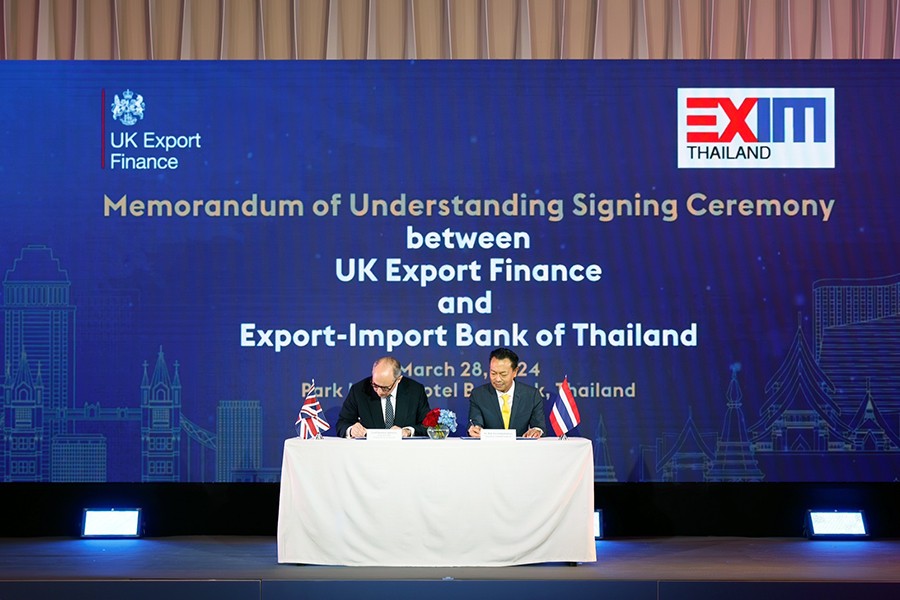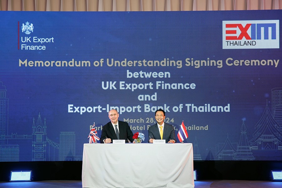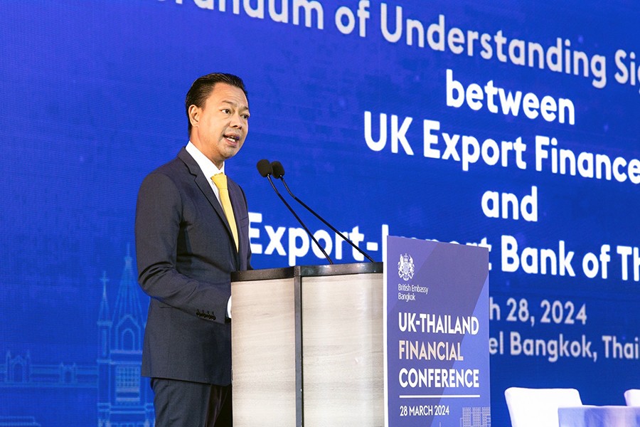 นายเศรษฐา ทวีสิน นายกรัฐมนตรีและรัฐมนตรีว่าการกระทรวงการคลัง ปาฐกถาพิเศษในงาน UK-Thailand Financial Forum จัดโดยสถานเอกอัครราชทูตอังกฤษประจำประเทศไทย โดยมี ดร.รักษ์ วรกิจโภคาทร กรรมการผู้จัดการ ธนาคารเพื่อการส่งออกและนำเข้าแห่งประเทศไทย (EXIM BANK) และลอร์ดจอห์นสัน แห่งเลนสตัน รัฐมนตรีช่วยว่าการกระทรวงธุรกิจและการค้า สหราชอาณาจักร ร่วมลงนามบันทึกข้อตกลงความร่วมมือเพื่อสนับสนุนให้ผู้ประกอบการไทยและสหราชอาณาจักรขยายธุรกิจการค้าและการลงทุนระหว่างไทยกับสหราชอาณาจักร และในประเทศที่สาม ผ่านกลไกการสนับสนุนของภาครัฐ ณ โรงแรมพาร์ค ไฮแอท กรุงเทพฯ เมื่อวันที่ 28 มีนาคม 2567