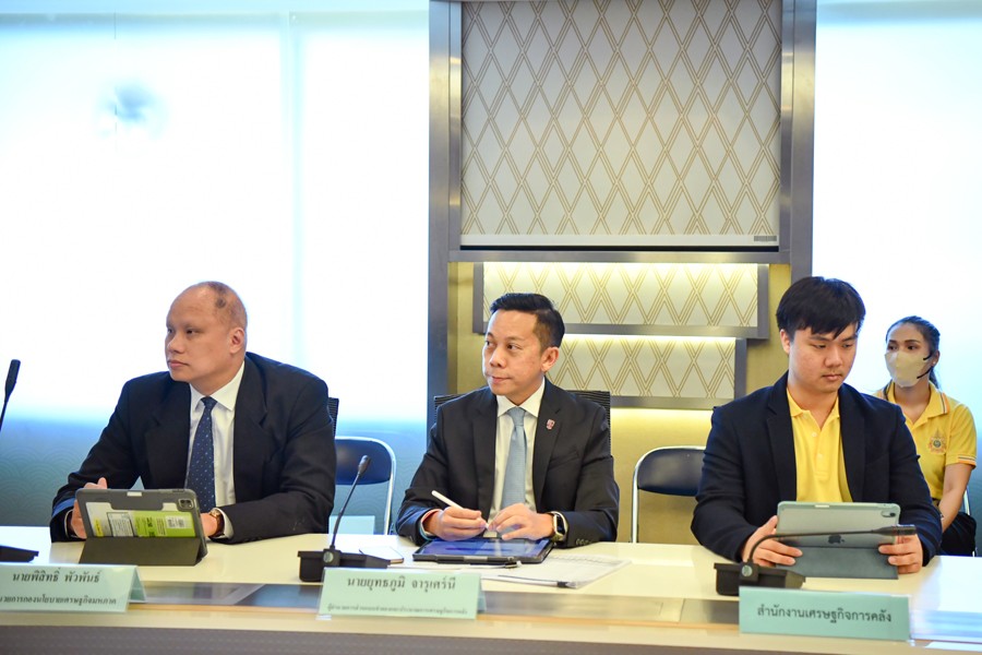 นายพรชัย ฐีระเวช ผู้อำนวยการสำนักงานเศรษฐกิจการคลัง ในฐานะโฆษกกระทรวงการคลัง และนายวโรทัย โกศลพิศิษฐ์กุล ที่ปรึกษาด้านเศรษฐกิจระหว่างประเทศ สำนักงานเศรษฐกิจการคลัง แถลงผลการประมาณการเศรษฐกิจไทยปี 2567 ณ ห้องประชุม 301 ชั้น 3 สำนักงานเศรษฐกิจการคลัง กระทรวงการคลัง เมื่อวันที่ 29 เมษายน 2567