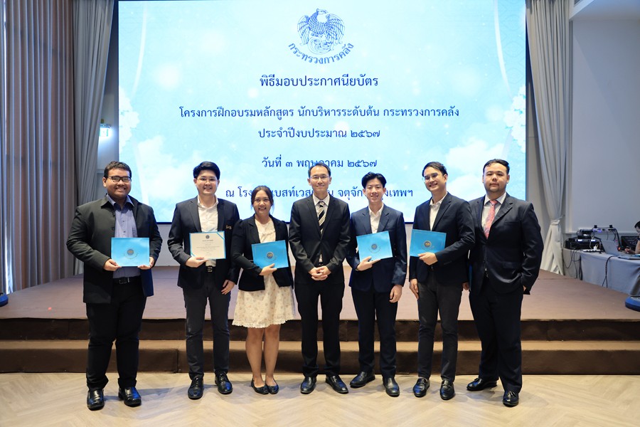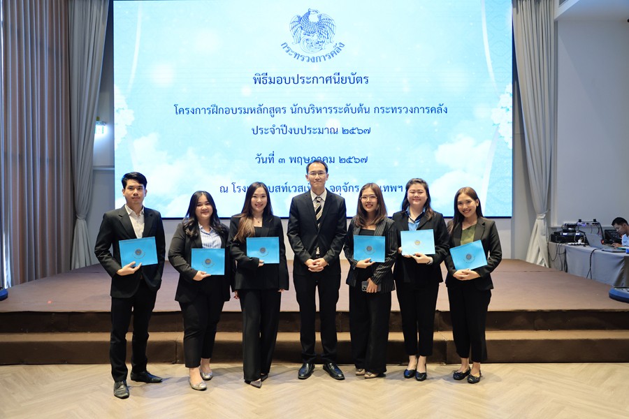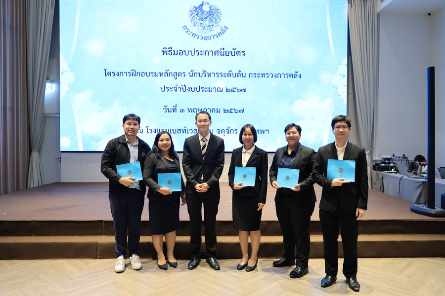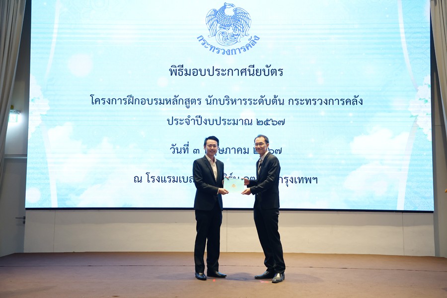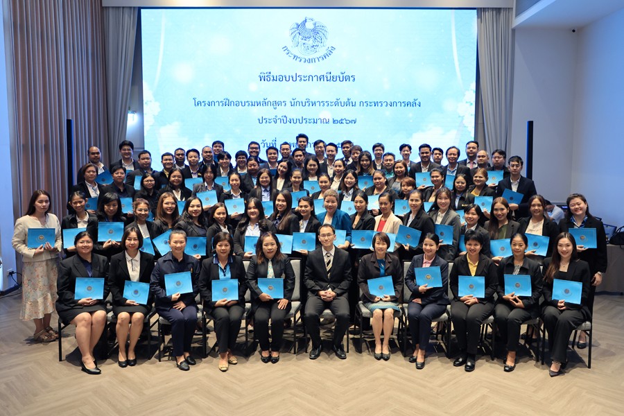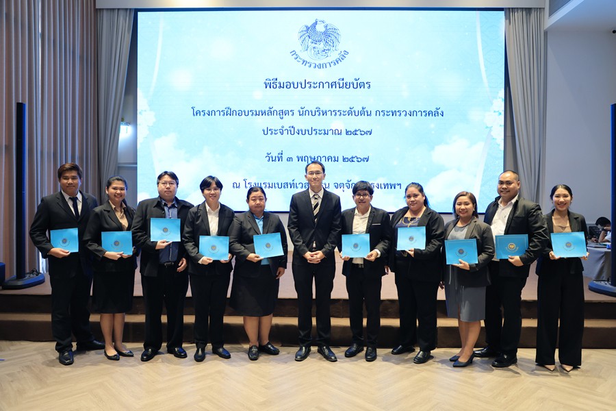 นายสิทธิรัตน์ ดรงคมาศ ผู้ช่วยปลัดกระทรวงการคลัง รักษาการในตำแหน่งที่ปรึกษาด้านเศรษฐกิจการคลัง สำนักงานเศรษฐกิจการคลัง เป็นประธานพิธีมอบประกาศนียบัตร โครงการฝึกอบรมหลักสูตร นักบริหารระดับต้น กระทรวงการคลัง ประจำปีงบประมาณ 2567 ณ โรงแรมเบสท์เวสเทิร์น จตุจัตร กรุงเทพฯ เมื่อวันที่ 3 พฤษภาคม 2567