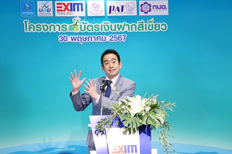 นายเผ่าภูมิ โรจนสกุล รัฐมนตรีช่วยว่าการกระทรวงการคลัง ร่วมแสดงความยินดีความสำเร็จของโครงการบัตรเงินฝากสีเขียว (Green Certificate of Deposit) ซึ่งธนาคารเพื่อการส่งออกและนำเข้าแห่งประเทศไทย (EXIM BANK) มีแผนเสนอขายภายในปี 2567 เป็นครั้งแรก มูลค่ารวม 5,000 ล้านบาท โดยตอบสนองนโยบายรัฐบาลในการขับเคลื่อนการพัฒนาระบบนิเวศคาร์บอนต่ำและการพัฒนาอย่างยั่งยืนตั้งแต่ระดับชุมชนไปจนถึงประเทศชาติและโลกโดยรวม นับเป็นครั้งแรกของการพัฒนาผลิตภัณฑ์บัตรเงินฝากสีเขียวภายใต้ Sustainable Finance Framework ที่ได้รับการรับรองมาตรฐานสากลโดย DNV (Thailand) Co., Ltd. เพื่อระดมทุนไปใช้สนับสนุนธุรกิจการค้าและการลงทุนของผู้ประกอบการไทยทั้งในและต่างประเทศที่เป็นมิตรกับสิ่งแวดล้อม โดยมีนายรักษ์ วรกิจโภคาทร กรรมการผู้จัดการธนาคารเพื่อการส่งออกและนำเข้าแห่งประเทศไทย (EXIM BANK) และผู้บริหารหน่วยงานพันธมิตร ร่วมแถลงข่าว ณ ห้องประชุม ชั้น Lobby ธนาคารเพื่อการส่งออกและนำเข้าแห่งประเทศไทย สำนักงานใหญ่ อาคารเอ็กซิม ถนนพหลโยธิน เมื่อวันที่ 30 พฤษภาคม 2567