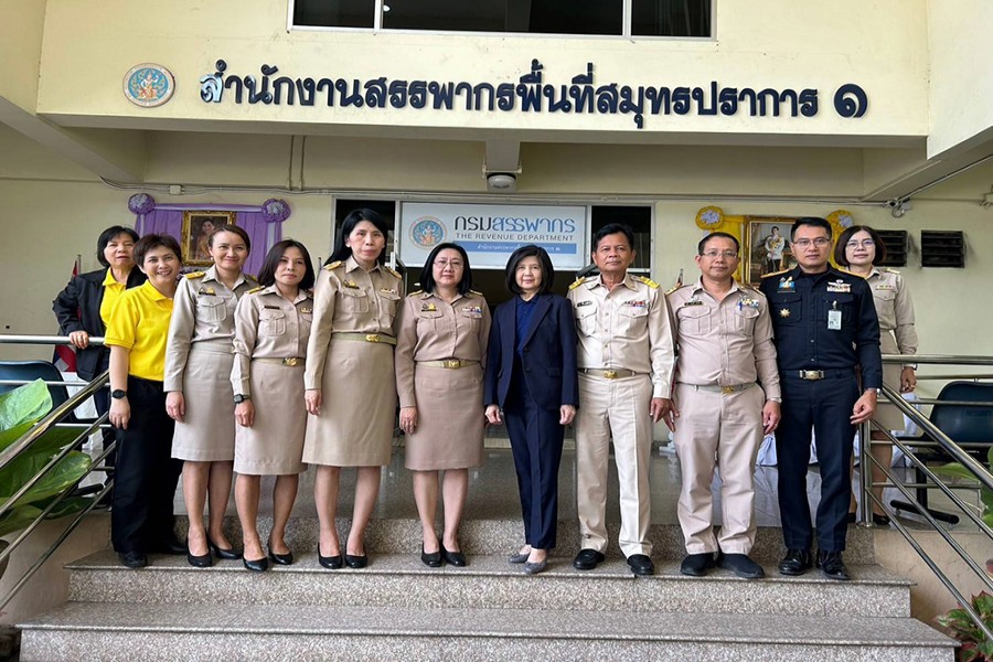 นางสาวขนิษฐา สหเมธาพัฒน์ ผู้ตรวจราชการกระทรวงการคลัง ตรวจราชการติดตามผลการปฏิบัติงานของส่วนราชการและรัฐวิสาหกิจในสังกัดกระทรวงการคลัง และประชุมเพื่อรับทราบผลการปฏิบัติงานตามนโยบายของกระทรวงการคลังและภารกิจที่รับมอบหมาย ตลอดจนรับฟังปัญหาและอุปสรรคในการปฏิบัติงาน ในโอกาสนี้ ได้เยี่ยมคารวะนายศุภมิตร ชิณศรี ผู้ว่าราชการจังหวัดสมุทรปราการ พร้อมทั้งประชุมหารือข้อราชการที่เกี่ยวข้องกับกระทรวงการคลังร่วมกับภาคเอกชน และตรวจเยี่ยมให้กำลังใจการปฏิบัติงานของเจ้าหน้าที่สำนักงานคลังจังหวัดสมุทรปราการ สำนักงานสรรพสามิตพื้นที่สมุทรปราการ 1 สำนักงานธนารักษ์พื้นที่สมุทรปราการ และสำนักงานสรรพากรพื้นที่สมุทรปราการ 1 พร้อมลงพื้นที่ติดตามโครงการพัฒนาคุณภาพชีวิตของบุคลากรในสังกัดกระทรวงการคลังประจำปีงบประมาณ พ.ศ. 2567 ณ จังหวัดสมุทรปราการ เมื่อวันที่ 18 มิถุนายน 2567