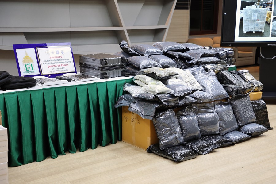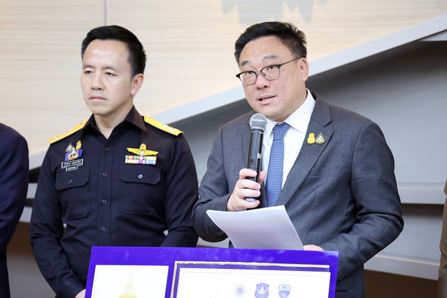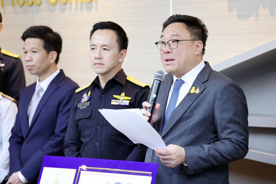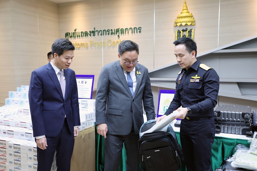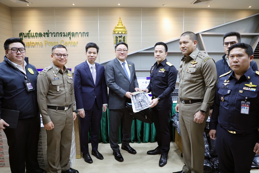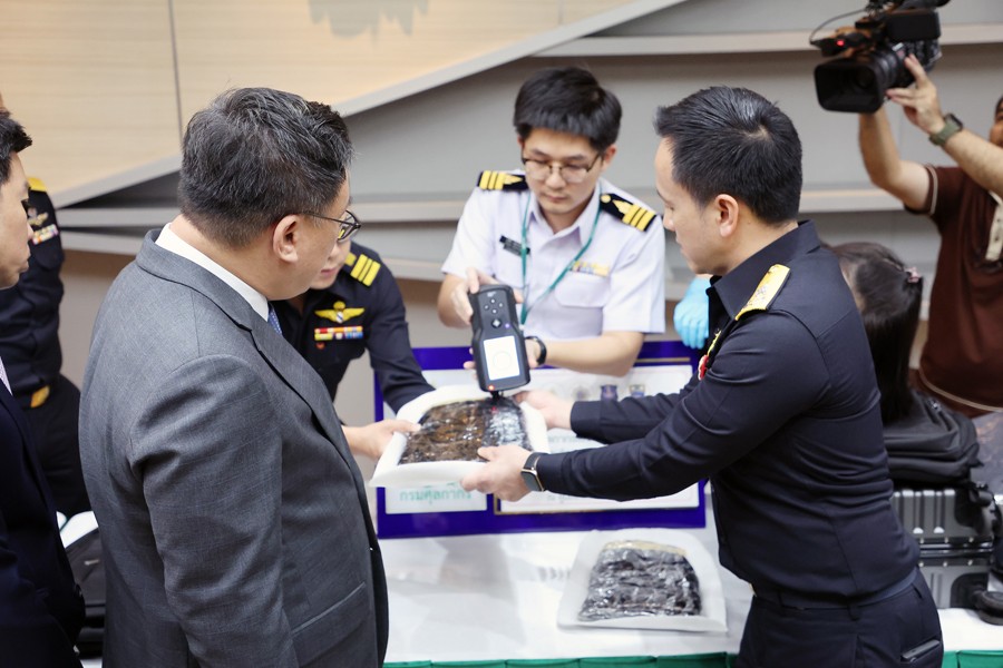 นายจุลพันธ์ อมรวิวัฒน์ รัฐมนตรีช่วยว่าการกระทรวงการคลัง นายสุรชาติ เทียนทอง ที่ปรึกษารัฐมนตรีช่วยว่าการกระทรวงการคลัง นายพันธ์ทอง ลอยกุลนันท์ ที่ปรึกษา ด้านการพัฒนาและบริหารการจัดเก็บภาษี นางสาวนิตยา เที่ยงตรงภิญโญ ผู้อำนวยการสำนักงานศุลกากร ตรวจของผู้โดยสาร นายวรพัฒน์ เชาว์วิศิษฐ ผู้อำนวยการกองสืบสวนและปราบปราม นายวิศณุ วัชราวนิช ผู้อำนวยการสำนักงานศุลกากรตรวจสินค้าท่าอากาศยานสุวรรณภูมิ ผู้แทนจากสำนักงานตรวจคนเข้าเมือง ผู้แทนจากสำนักงานคณะกรรมการป้องกันและปราบปรามยาเสพติด ผู้แทนจากกองบัญชาการตำรวจปราบปราม ยาเสพติด ร่วมแถลงข่าว กรมศุลกากรเร่งสกัดกั้นการลักลอบนำเข้าและส่งออกยาเสพติดทุกช่องทาง รวมมูลค่ากว่า 42.53 ล้านบาท ณ ศูนย์แถลงข่าว ชั้น 2 อาคาร 1 กรมศุลกากร เมื่อวันที่ 27 มิถุนายน 2567