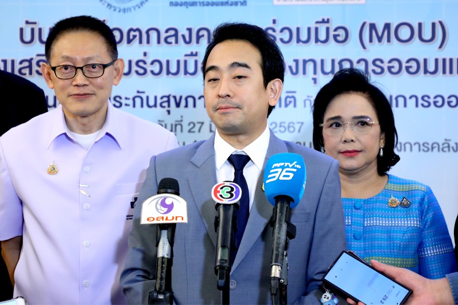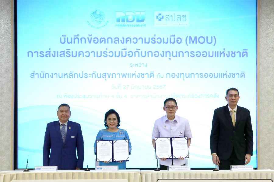 นายเผ่าภูมิ โรจนสกุล รัฐมนตรีช่วยว่าการกระทรวงการคลัง เป็นประธานในพิธี ลงนามบันทึกข้อตกลงความร่วมมือ ระหว่างสำนักงานหลักประกันสุขภาพแห่งชาติ (สปสช.) กับ กองทุนการออมแห่งชาติ (กอช.) เพื่อยกระดับคุณภาพชีวิต-ส่งเสริมการออม ตั้งเป้าผลักดัน “แรงงานนอกระบบ” กว่า 10 ล้านคน เข้าระบบออมเงิน หวังให้มีบำนาญไว้ใช้ยามเกษียณ ณ ห้องประชุมวายุภักษ์ ชั้น 4 อาคารสำนักงานปลัดกระทรวงการคลัง เมื่อวันที่ 27 มิถุนายน 2567