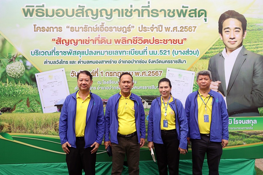นายเผ่าภูมิ โรจนสกุล รัฐมนตรีช่วยว่าการกระทรวงการคลัง เป็นประธานในพิธีมอบสัญญาเช่าที่ราชพัสดุ โครงการธนารักษ์เอื้อราษฎร์ “สัญญาเช่าที่ดิน พลิกชีวิตประชาชน” ประจำปี พ.ศ. 2567 บนที่ราชพัสดุแปลงหมายเลขทะเบียนที่ นม.521 (บางส่วน) ตำบลวังไทร และตำบลหนองสาหร่าย อำเภอปากช่อง จังหวัดนครราชสีมา โดยมีนายจำเริญ โพธิยอด อธิบดีกรมธนารักษ์ นายสมมาตร มณีหยัน รองอธิบดีกรมธนารักษ์ พร้อมคณะผู้บริหารกรมธนารักษ์ ให้การต้อนรับ ซึ่งการมอบสัญญาเช่าให้แก่ราษฎรที่ถือครองที่ราชพัสดุในพื้นที่ครั้งนี้ มีผู้ได้รับสัญญาเช่าที่ราชพัสดุ จำนวน 300 ราย 392 สัญญา แบ่งเป็น เพื่ออยู่อาศัย จำนวน 291 สัญญา เนื้อที่ประมาณ 88 – 2 – 24 ไร่ และเพื่อการเกษตร จำนวน 101 สัญญา เนื้อที่ประมาณ 160 – 0 – 63 ไร่ และเป็นจังหวัดลำดับแรกใน 9 จังหวัด ที่กระทรวงการคลังมีนโยบายเดินหน้าโครงการธนารักษ์เอื้อราษฎร์ “สัญญาเช่าที่ดิน พลิกชีวิตประชาชน” ที่มุ่งหวังทำให้ประชาชนมีที่อยู่อาศัยและที่ดินทำกิน มีความมั่นคงในอาชีพและรายได้ นำไปสู่ความเป็นอยู่ที่ดีอย่างยั่งยืน ทั้งในด้านสาธารณูปโภค และระบบสาธารณูปการ สามารถเข้าถึงบริการสาธารณะขั้นพื้นฐานของทางราชการ สร้างความเข้มแข็งด้านสังคม ลดความเลื่อมล้ำและเพิ่มคุณภาพชีวิตที่ดีให้กับประชาชนในพื้นที่ ณ โรงเรียนบ้านหินเพิง อำเภอปากช่อง จังหวัดนครราชสีมา และลงพื้นที่ตรวจราชการตามภารกิจกรมธนารักษ์เพื่อสนับสนุนการสร้างคุณภาพชีวิตที่ดีให้กับประชาชนในพื้นที่ ซึ่งกิจกรรมดังกล่าวเป็นหนึ่งในภารกิจการลงพื้นที่ของกระทรวงการคลังในระหว่างการเข้าร่วมประชุมคณะรัฐมนตรีอย่างเป็นทางการนอกสถานที่ ครั้งที่ 4/2567 (ครม.สัญจร) กลุ่มจังหวัดภาคตะวันออกเฉียงเหนือตอนล่าง 1 (จังหวัดชัยภูมิ นครราชสีมา บุรีรัมย์ สุรินทร์) ระหว่างวันที่ 1-2 กรกฎาคม 2567 โดยมีนายอำนาจ เฮี๊ยะหลง ผู้ช่วยกรรมการผู้จัดการ ธนาคารพัฒนาวิสาหกิจขนาดกลางและขนาดย่อมแห่งประเทศไทย (ธพว.) หรือ SME D Bank พร้อมผู้บริหารและเจ้าหน้าที่ ร่วมติดตามคณะ เมื่อวันที่ 1 กรกฎาคม 2567