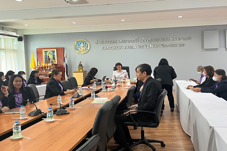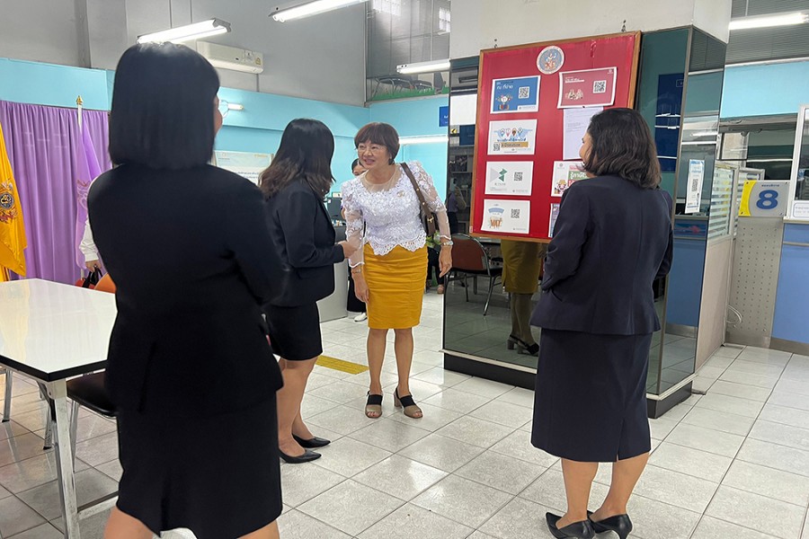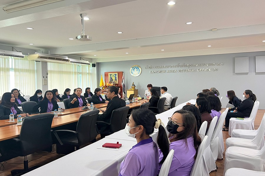 นางสาวศุกร์ศิริ อภิญญานุวัฒน์ ผู้ตรวจราชการกระทรวงการคลัง ตรวจราชการติดตามผลการปฏิบัติงานตามแผนงาน โครงการที่ได้รับมอบหมายจากกรมสรรพากร กระทรวงการคลัง และรัฐบาล ในโอกาสนี้ ได้ตรวจเยี่ยมให้กำลังใจเจ้าหน้าที่ในการปฏิบัติงานของสำนักงานสรรพากรพื้นที่กรุงเทพมหานคร 25 และสำนักงานสรรพากรพื้นที่สาขาตลิ่งชัน พร้อมทั้งติดตามโครงการที่พัฒนาคุณภาพชีวิตของบุคคลากรในสังกัดกระทรวงการคลัง ณ สำนักงานสรรพากรพื้นที่กรุงเทพมหานคร 25 ถนนบรมราชชนนี แขวงฉิมพลี เขตตลิ่งชัน เมื่อวันที่ 27 มิถุนายน 2567