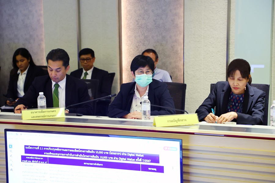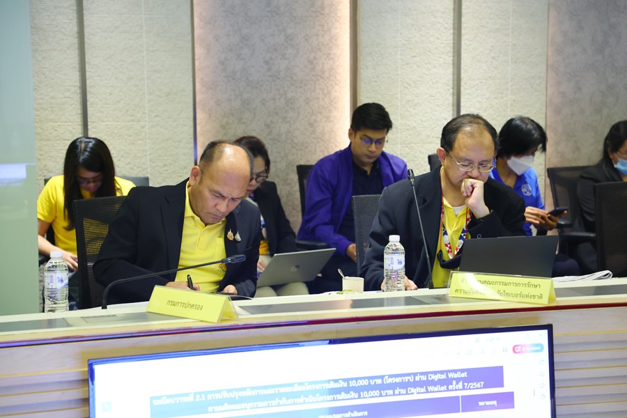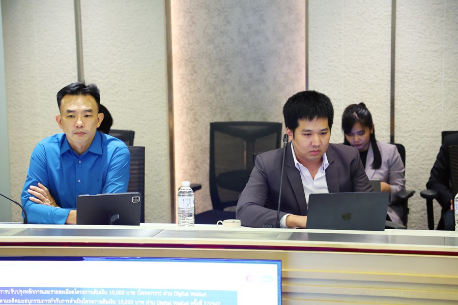 นายจุลพันธ์ อมรวิวัฒน์ รัฐมนตรีช่วยว่าการกระทรวงการคลัง และนายเผ่าภูมิ โรจนสกุล รัฐมนตรีช่วยว่าการกระทรวงการคลัง เป็นประธานการประชุมคณะอนุกรรมการกำกับการดำเนินโครงการเติมเงิน 10,000 บาท ผ่าน Digital Wallet ครั้งที่ 8/2567 โดยมีนายลวรณ แสงสนิท ปลัดกระทรวงการคลัง นายพรชัย ฐีระเวช ผู้อำนวยการสำนักงานเศรษฐกิจการคลัง และผู้แทนหน่วยงานที่เกี่ยวข้อง ร่วมการประชุม ณ ห้องประชุมวายุภักษ์ 1 กระทรวงการคลัง เมื่อวันที่ 12 กรกฎาคม 2567