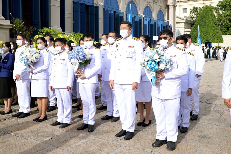 นายธีรลักษ์ แสงสนิท ผู้ตรวจราชการกระทรวงการคลัง ถวายแจกันดอกไม้และลงนามถวายพระพร เนื่องในโอกาสวันเฉลิมพระชนมพรรษาสมเด็จพระนางเจ้าสิริกิติ์ พระบรมราชินีนาถ พระบรมราชชนนีพันปีหลวง 12 สิงหาคม 2567 ณ ศาลาสหทัยสมาคม ในพระบรมมหาราชวัง เมื่อวันที่ 12 สิงหาคม 2567