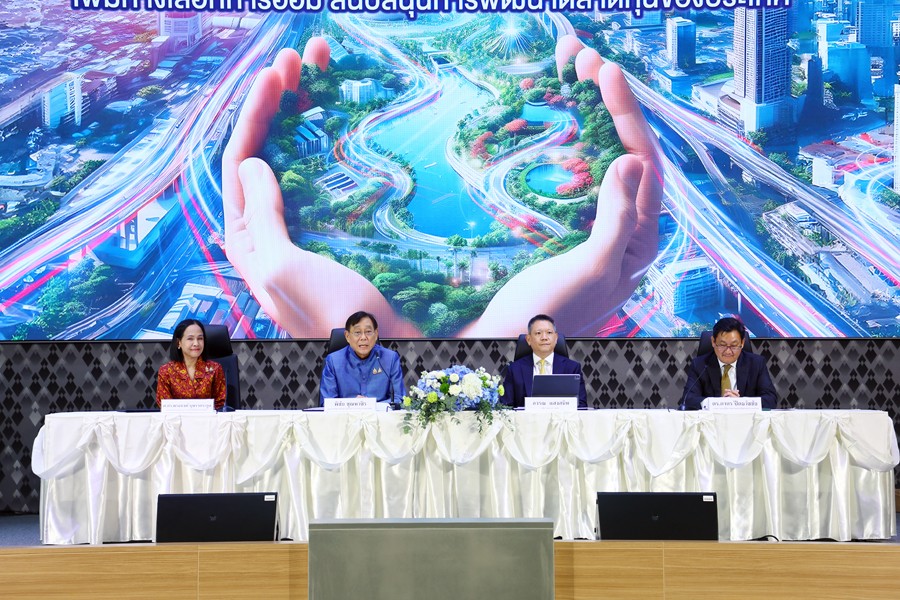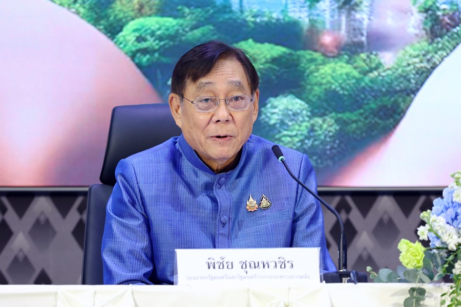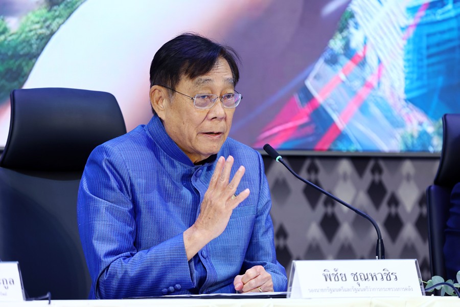 นายพิชัย ชุณหวชิร รองนายกรัฐมนตรีและรัฐมนตรีว่าการกระทรวงการคลัง นายลวรณ แสงสนิท ปลัดกระทรวงการคลัง ในฐานะประธานคณะกรรมการกำกับการดำเนินงานของกองทุนรวมวายุภักษ์ ศ.ดร.พรอนงค์ บุษราตระกูล เลขาธิการ สำนักงานคณะกรรมการกำกับหลักทรัพย์และตลาดหลักทรัพย์ (ก.ล.ต.) และ นายภากร ปีตธวัชชัย กรรมการและผู้จัดการ ตลาดหลักทรัพย์แห่งประเทศไทย (ต.ล.ท.) ร่วมแถลงข่าว“กองทุนรวมวายุภักษ์ หนึ่ง” เตรียมเดินหน้าเสนอขายหน่วยลงทุนประเภท ก. แก่นักลงทุนทั่วไป มูลค่ารวมไม่เกิน 1 แสน -1.5 แสนล้านบาท คาดเริ่มเสนอขายหน่วยลงทุนประเภท ก. และนำเข้าจดทะเบียนเพื่อซื้อขายในตลาดหลักทรัพย์ฯ ได้ภายในไตรมาส 3 ปีนี้ เพิ่มทางเลือกในการออมแก่ประชาชน สนับสนุนการพัฒนาตลาดทุนของประเทศ ณ ห้องประชุมกำปั่นเงิน ชั้น 21 อาคาร 150 ปี กระทรวงการคลัง เมื่อวันที่ 13 สิงหาคม 2567