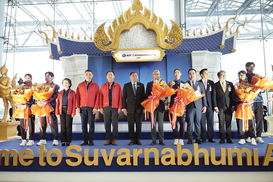นายอัครุตม์ สนธยานนท์ รองปลัดกระทรวงการคลัง ในฐานะประธานกรรมการธนาคาร พร้อมด้วยนายกมลภพ วีระพละ กรรมการผู้จัดการ และผู้บริหาร ธนาคารอาคารสงเคราะห์ (ธอส.) ให้การต้อนรับนักกีฬาเทควันโดทีมชาติไทย และทีมผู้ฝึกสอน เดินทางกลับจากการแข่งขันกีฬาโอลิมปิก ครั้งที่ 33 ปารีส 2024 พร้อมแสดงความยินดี “น้องเทนนิส” เรืออากาศโทหญิง พาณิภัค วงศ์พัฒนกิจ นักกีฬาเทควันโดทีมชาติไทยที่คว้าเหรียญทองจากการแข่งขันกีฬาโอลิมปิก 2024 เป็นสมัยที่ 2 และเป็นนักกีฬาคนแรกของไทย ที่สร้างประวัติศาสตร์คว้าเหรียญโอลิมปิก 3 ครั้งติดต่อกัน ทั้งนี้ ธนาคารอาคารสงเคราะห์ (ธอส.) เป็นผู้สนับสนุนหลักของสมาคมกีฬาเทควันโดแห่งประเทศไทยตั้งแต่ปี 2549 ถึงปัจจุบัน ณ ท่าอากาศยานนานาชาติสุวรรณภูมิ เมื่อวันที่ 13 สิงหาคม 2567