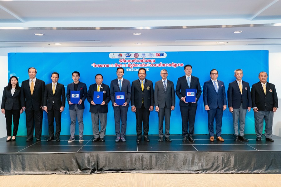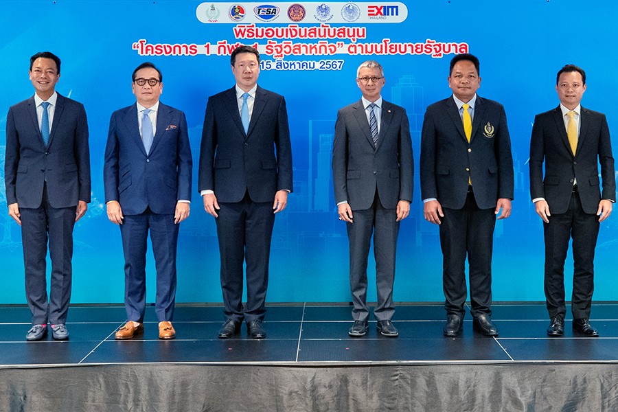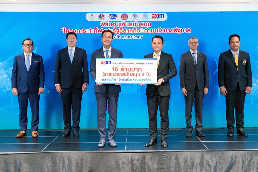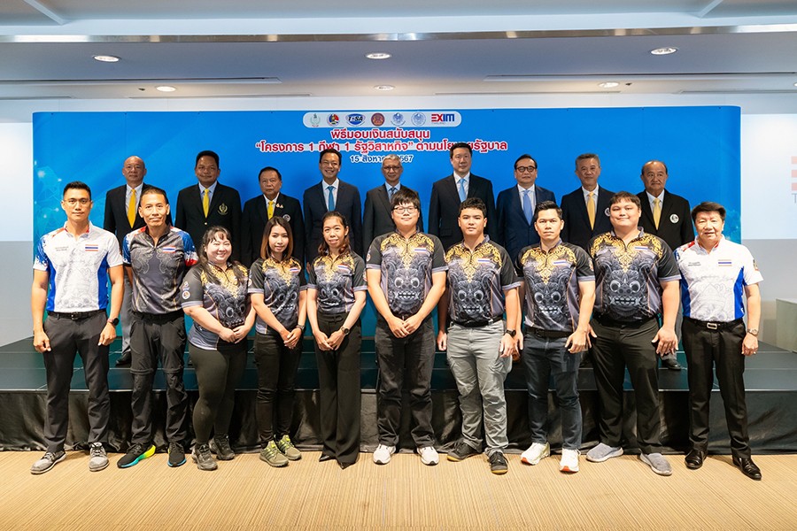 นายธีรลักษ์ แสงสนิท ผู้ตรวจราชการกระทรวงการคลัง ในฐานะประธานกรรมการธนาคาร นายบัณฑิต สะเพียรชัย ประธานกรรมการบริหาร และนายรักษ์ วรกิจโภคาทร กรรมการผู้จัดการ ธนาคารเพื่อการส่งออกและนำเข้าแห่งประเทศไทย (EXIM BANK) ให้การต้อนรับและมอบเงินสนับสนุนโครงการ “1 กีฬา 1 รัฐวิสาหกิจ” แก่สมาคมกีฬายิงปืนรณยุทธแห่งประเทศไทย และสมาคมกีฬาเอ็กซ์ตรีมแห่งประเทศไทย จำนวนเงิน 32 ล้านบาท เป็นระยะเวลา 4 ปี โดยมีพลเอกเพิ่มศักดิ์ พวงสาโรจน์ นายกสมาคมกีฬายิงปืนรณยุทธแห่งประเทศไทย และนายโรจน์ เมืองครุธ อุปนายกสมาคมกีฬาเอ็กซ์ตรีมแห่งประเทศไทย เป็นผู้รับมอบ และผู้ช่วยศาสตราจารย์พิมล ศรีวิกรม์ ในฐานะประธานคณะอนุกรรมการพิจารณาจัดการสนับสนุนสมาคมกีฬาจากหน่วยงานรัฐวิสาหกิจและภาคเอกชน พร้อมด้วยนายปรีชา ลาลุน รองผู้ว่าการการกีฬาแห่งประเทศไทย ฝ่ายกีฬาอาชีพและกีฬามวย ร่วมพิธี นับเป็นอีกก้าวสำคัญของ EXIM BANK ในการสร้างบทบาทใหม่ในฐานะธนาคารที่มีความรับผิดชอบต่อสังคมผ่านการส่งเสริมและสนับสนุนการพัฒนาด้านกีฬาอย่างเป็นระบบ ต่อยอดการเป็น Soft Power และนักกีฬาไทยสู่การแข่งขันกีฬาในระดับนานาชาติ เป็นประโยชน์ต่อการขับเคลื่อนเศรษฐกิจและสังคม รวมทั้งการพัฒนาทรัพยากรมนุษย์ที่มีคุณภาพในวงการกีฬามืออาชีพและชื่อเสียงที่ดีของประเทศไทยในระดับสากล ณ ธนาคารเพื่อการส่งออกและนำเข้าแห่งประเทศไทย สำนักงานใหญ่ เมื่อวันที่ 15 สิงหาคม 2567