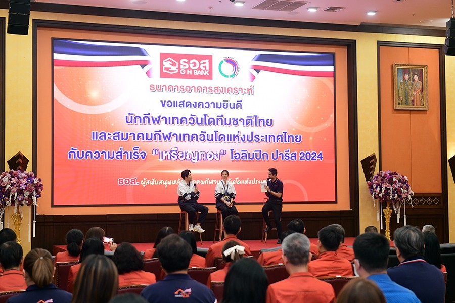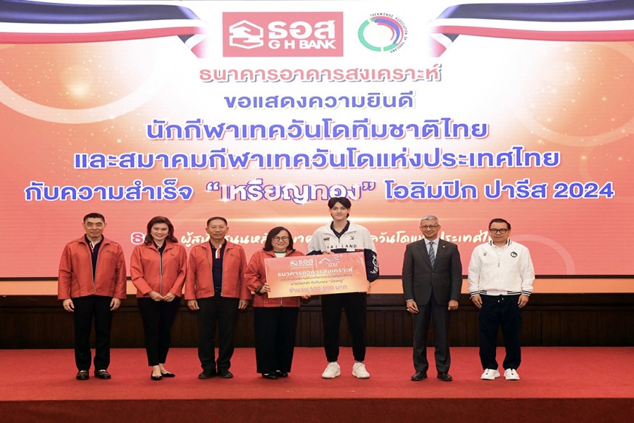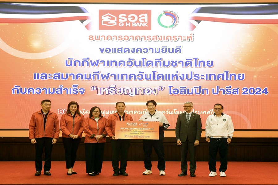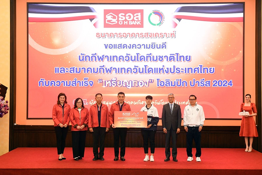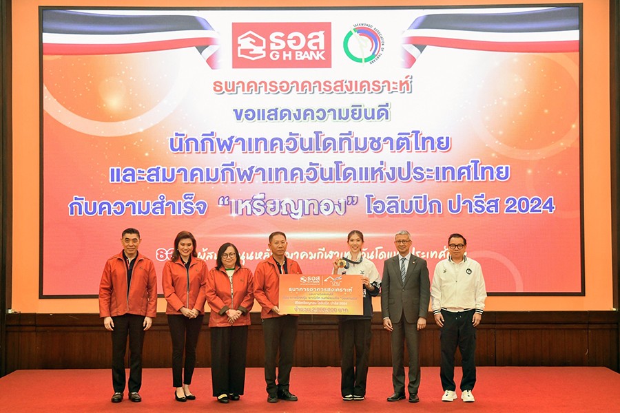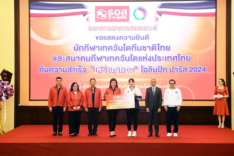 นายอัครุตม์ สนธยานนท์ รองปลัดกระทรวงการคลัง ในฐานะประธานกรรมการธนาคาร พร้อมด้วยนางสาวปิยวรรณ ล่ามกิจจา กรรมการธนาคาร ดร.กิริฎา เภาจิตร กรรมการธนาคาร ในฐานะประธานคณะกรรมการกำกับดูแลกิจการที่ดีและความรับผิดชอบต่อสังคมและสิ่งแวดล้อม (CG & CSR) พร้อมผู้บริหาร ธนาคารอาคารสงเคราะห์ (ธอส.) ให้การต้อนรับ ผศ.พิมล ศรีวิกรม์ นายกสมาคมกีฬาเทควันโดแห่งประเทศไทย นายชัชชัย เช และร้อยเอกหญิง ชนาธิป ซ้อนขำ โค้ชผู้ฝึกสอน และ เรืออากาศโทหญิง พาณิภัค วงศ์พัฒนกิจ นายบัลลังก์ ทับทิมแดง และนางสาวศศิกานต์ ทองจันทร์ ทีมนักกีฬาเทควันโดทีมชาติไทย หลังคว้าชัยในการแข่งขันโอลิมปิก ปารีส 2024 โดยแสดงความขอบคุณ ธอส. ในฐานะผู้สนับสนุนหลักสมาคมกีฬาเทควันโดแห่งประเทศไทยมาตั้งแต่ปี 2549 ถึงปัจจุบัน โดย ธอส.ได้แสดงความยินดีที่สมาคมกีฬาเทควันโดแห่งประเทศไทย สามารถคว้า 1 เหรียญทอง จากการแข่งขันโอลิมปิกครั้งที่ 33 ปารีส 2024 ได้สำเร็จ และเพื่อเป็นการตอบแทนที่สร้างชื่อเสียงให้กับประเทศไทย โดย ธอส. จึงมอบเงินรางวัลพิเศษรวม 4,000,000 บาท ให้แก่นักกีฬาและผู้ฝึกสอน ณ ณ ห้องวิมานเมฆ ชั้น 3 อาคาร 2 ธนาคารอาคารสงเคราะห์ สำนักงานใหญ่ เมื่อวันที่ 15 สิงหาคม 2567