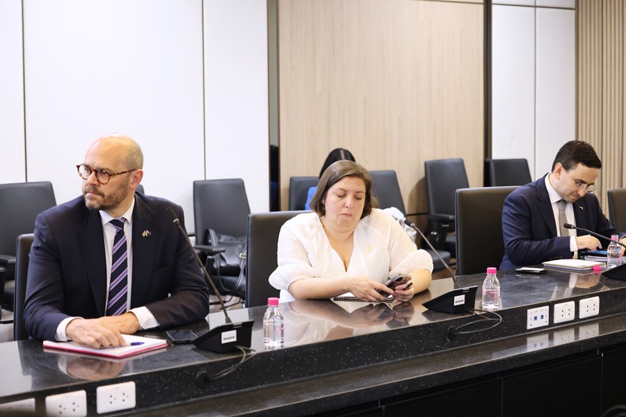 นายเผ่าภูมิ โรจนสกุล รัฐมนตรีช่วยว่าการกระทรวงการคลัง ให้การต้อนรับ Mr. Nicholas Moore ผู้แทนพิเศษประจำภูมิภาคเอเชีย และ H.E. Dr. Angela Jane Macdonald เอกอัครราชทูตออสเตรเลียประจำประเทศไทย เนื่องในโอกาสเข้าเยี่ยมคารวะและหารือข้อราชการ ณ ห้องประชุมรัฐมนตรีช่วยว่าการกระทรวงการคลัง ชั้น 19 อาคาร 150 ปี กระทรวงการคลัง เมื่อวันที่ 9 ตุลาคม 2567