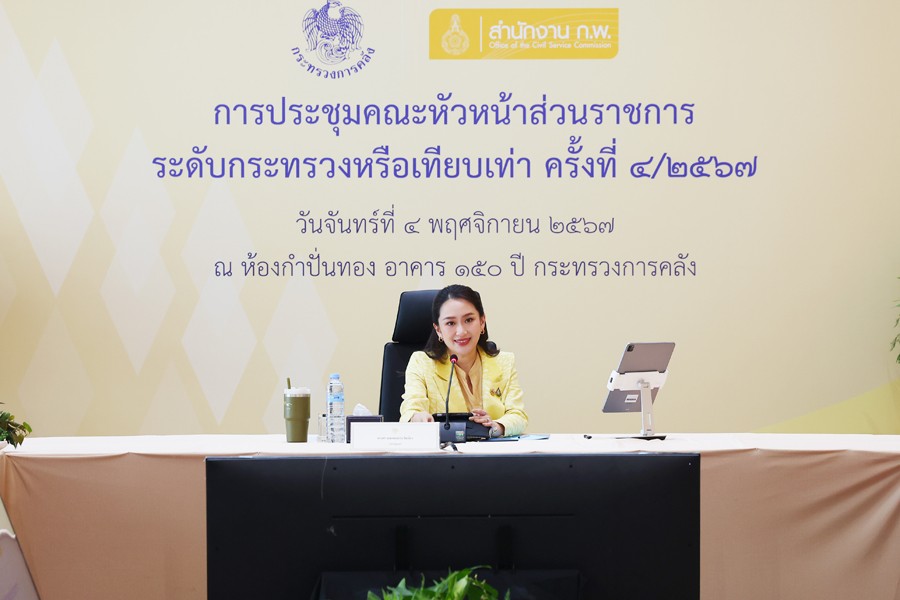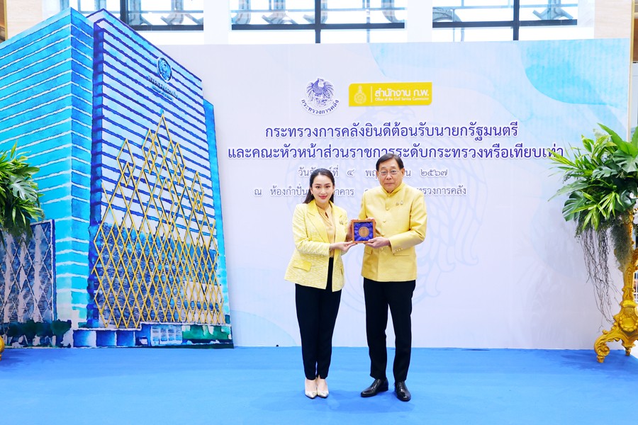นายพิชัย ชุณหวชิร รองนายกรัฐมนตรีและรัฐมนตรีว่าการกระทรวงการคลัง นายจุลพันธ์ อมรวิวัฒน์ รัฐมนตรีช่วยว่าการกระทรวงการคลัง นายเผ่าภูมิ โรจนสกุล รัฐมนตรีช่วยว่าการกระทรวงการคลัง และนายลวรณ แสงสนิท ปลัดกระทรวงการคลัง พร้อมด้วยคณะผู้บริหารกระทรวงการคลังให้การต้อนรับ นางสาวแพทองธาร ชินวัตร นายกรัฐมนตรี ประธานการประชุมคณะหัวหน้าส่วนราชการระดับกระทรวงหรือเทียบเท่า ครั้งที่ 4/2567 โอกาสนี้ นายกรัฐมนตรีให้เกียรติถ่ายรูปร่วมกับหัวหน้าส่วนราชการ และรับมอบของที่ระลึกจากรองนายกรัฐมนตรีและรัฐมนตรีว่าการกระทรวงการคลัง ณ อาคาร 150 ปี กระทรวงการคลัง เมื่อวันที่ 4 พฤศจิกายน 2567
