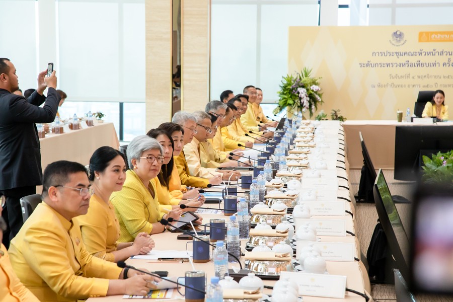 นางสาวแพทองธาร ชินวัตร นายกรัฐมนตรี เป็นประธานการประชุมคณะหัวหน้าส่วนราชการระดับกระทรวงหรือเทียบเท่า ครั้งที่ 4/2567 โดยมีนายลวรณ แสงสนิท ปลัดกระทรวงการคลัง พร้อมด้วยคณะผู้บริหารหัวหน้าส่วนราชการระดับกระทรวงหรือเทียบเท่า รวม 41 หน่วยงาน เข้าร่วมในการประชุม ณ ห้องกำปั่นทอง ชั้น 21 อาคาร 150 ปี กระทรวงการคลัง เมื่อวันที่ 4 พฤศจิกายน 2567